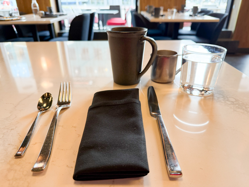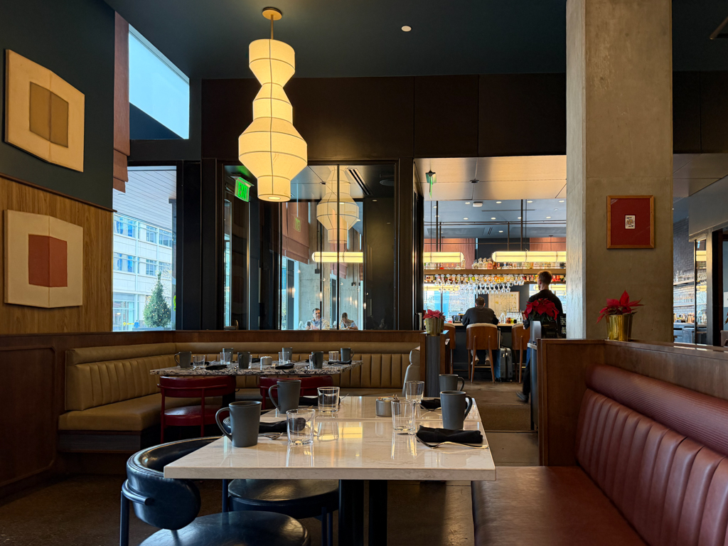 The next morning, I walked in to Ajax Downtown for breakfast and to wait for my pain relief pills to kick in. Even after using the Theragun the night before – apparently, I’d strained a butt muscle while snowboarding. But, nothing that time, pain pills and food couldn’t help.