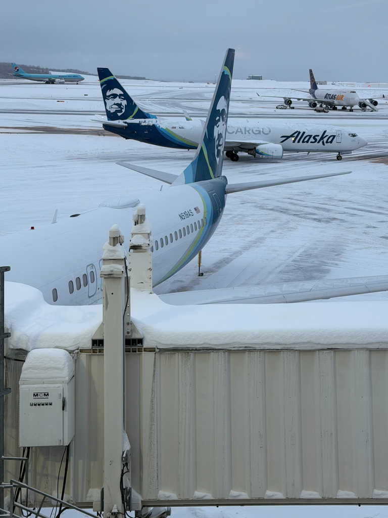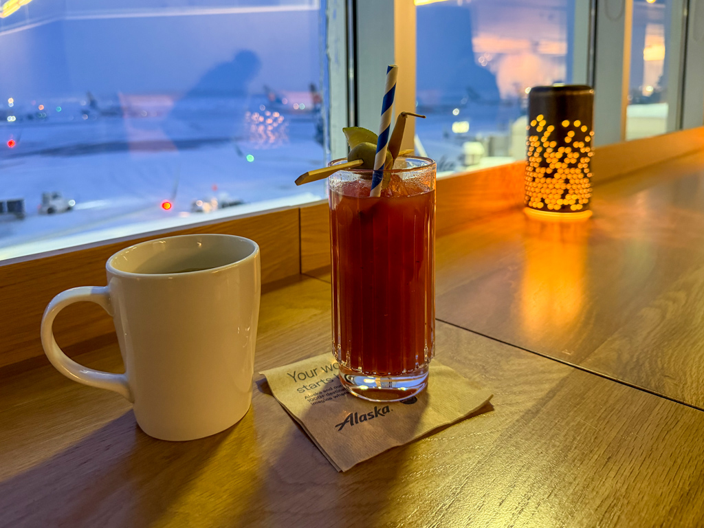 Given the previous day’s snowstorm, the lounge was filled with hushed conversations about cancellations and de-icing delays. I shared those concerns, particularly regarding our connection in Portland. However, the lounge provided the perfect vantage point to weather the uncertainty with light bites and a well-made cocktails – something Alaskans do exceptionally well.