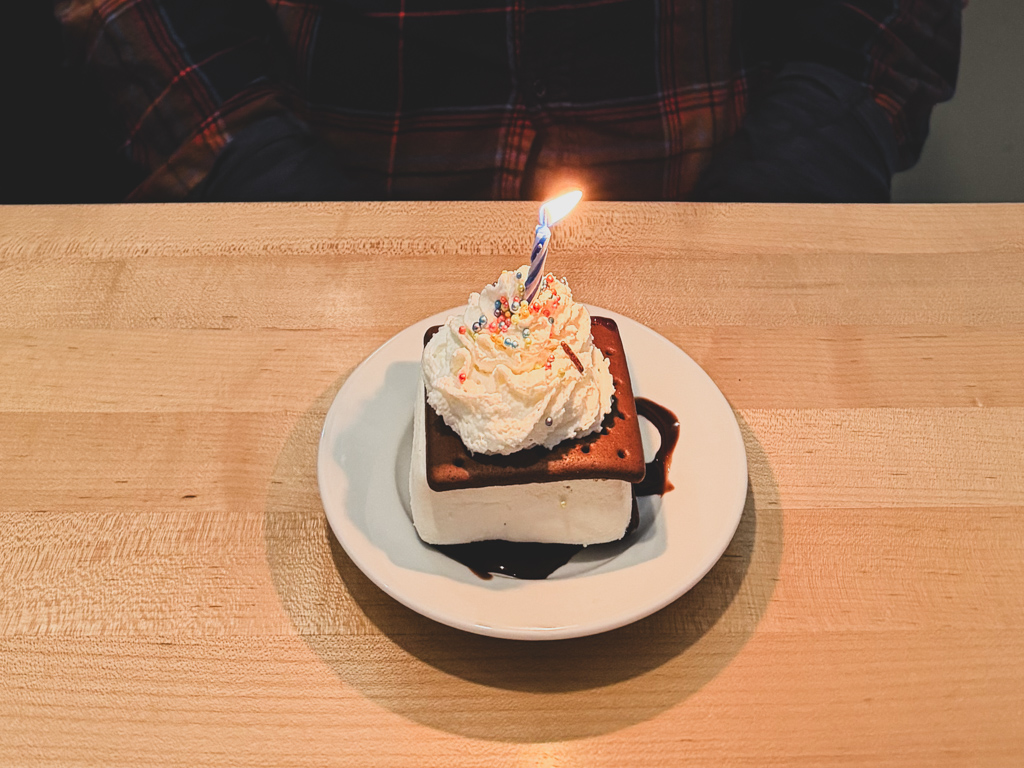 The evening concluded on a high note as our waitress brought out a “fat boy” ice cream sandwich for Onnik. As I sang “Happy Birthday” to him, I knew he felt the care I’d put into curating a weekend that truly reflected my appreciation for him.