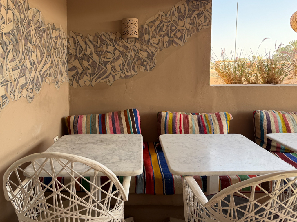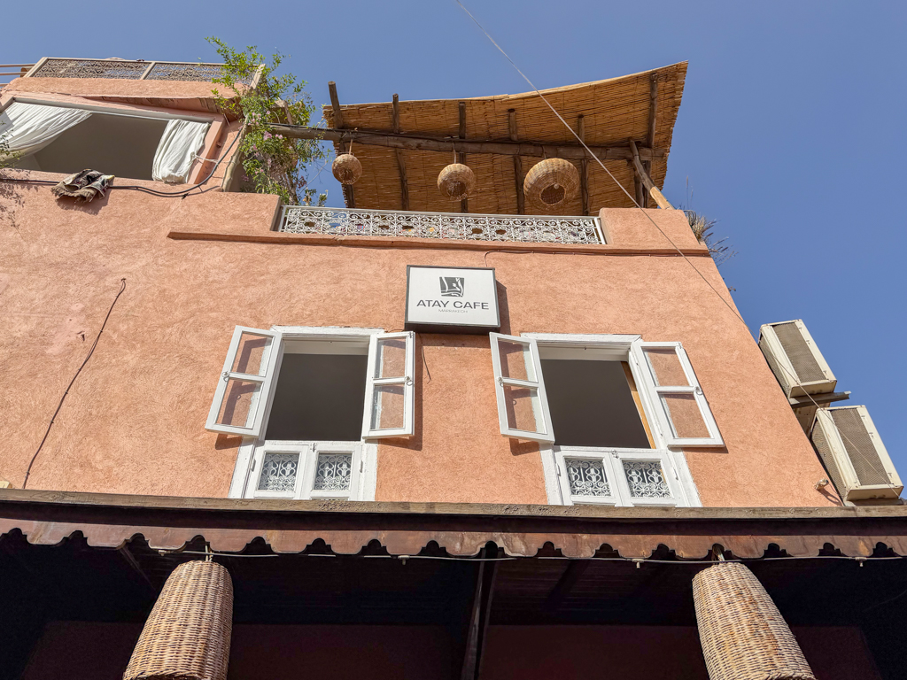 Atay Cafe in Marrakesh features sweeping rooftop views and Moroccan dishes like tagines and salads in a relaxed and comfortable setting