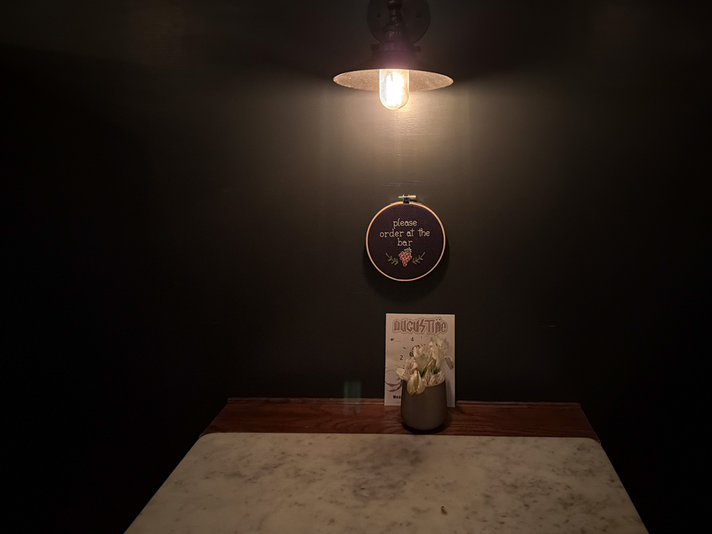 Augustine Wine Bar was just as cozy and beautiful as I remembered it. Arriving before Kyle, I easily found a booth for us to take up space in.