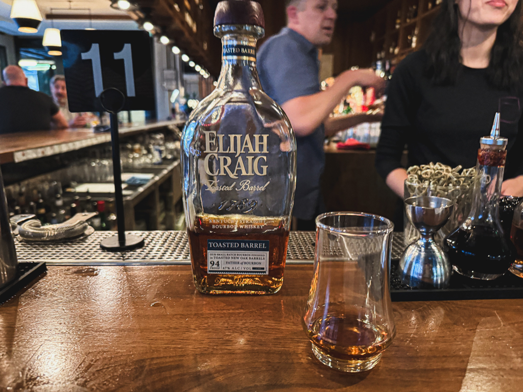 Ryan started me off with a taste of the ELIJAH CRAIG TOASTED BARREL (Small Batch Bourbon Finished in Toasted New Oak Barrels).