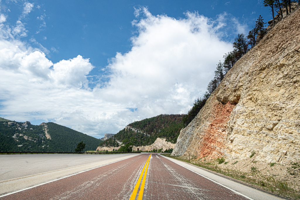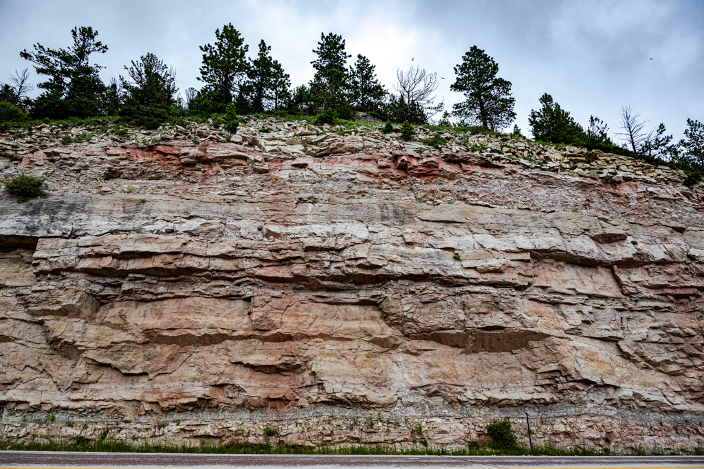 As the road climbs, it cuts through  cliffs of the Tensleep Formation, remnants of ancient Pennsylvanian dunes and shallow seas. Above that, the layered Amsden Formation marks a shifting shoreline, followed by the fossil-laden Madison Limestone – a remnant of a 300-million-year-old inland sea – now shaped into ridges and canyons.