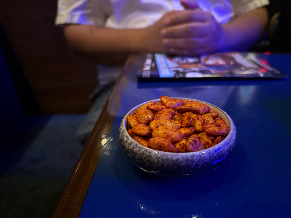 The SPICY VALENCIA ALMONDS (toasted and dusted with smoky Aleppo-style chili) were fine.