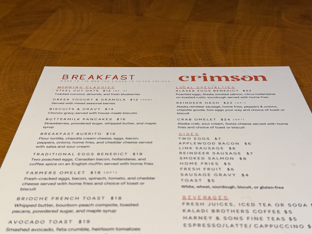 Breakfast at Crimson at The Wildbirch Hotel was a great way to start the day before we ventured on to explore the Anchorage Museum.