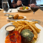 For my meal, I chose the BRIOCHE FRENCH TOAST (Whipped butter, bourbon-peach compote, toasted pecans, powdered sugar, and maple syrup). To balance the sweetness, I added a side of crispy APPLEWOOD BACON because, of course.