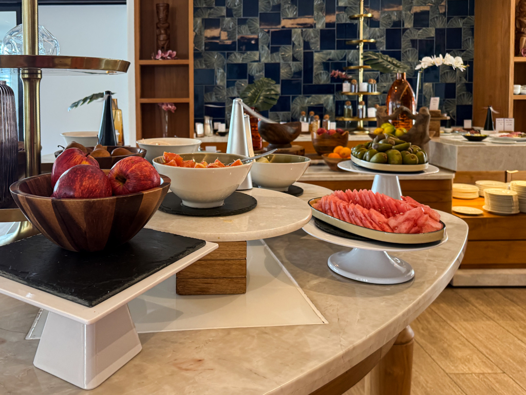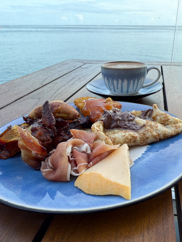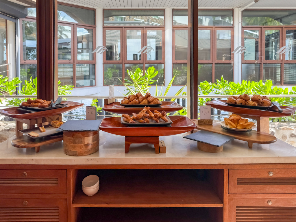 The breakfast spread? Perfection. From crepes and hash browns to rice with curry and fresh tropical fruit, it hit all the notes. Even the bread selection – as expected in a French territory – was excellent.