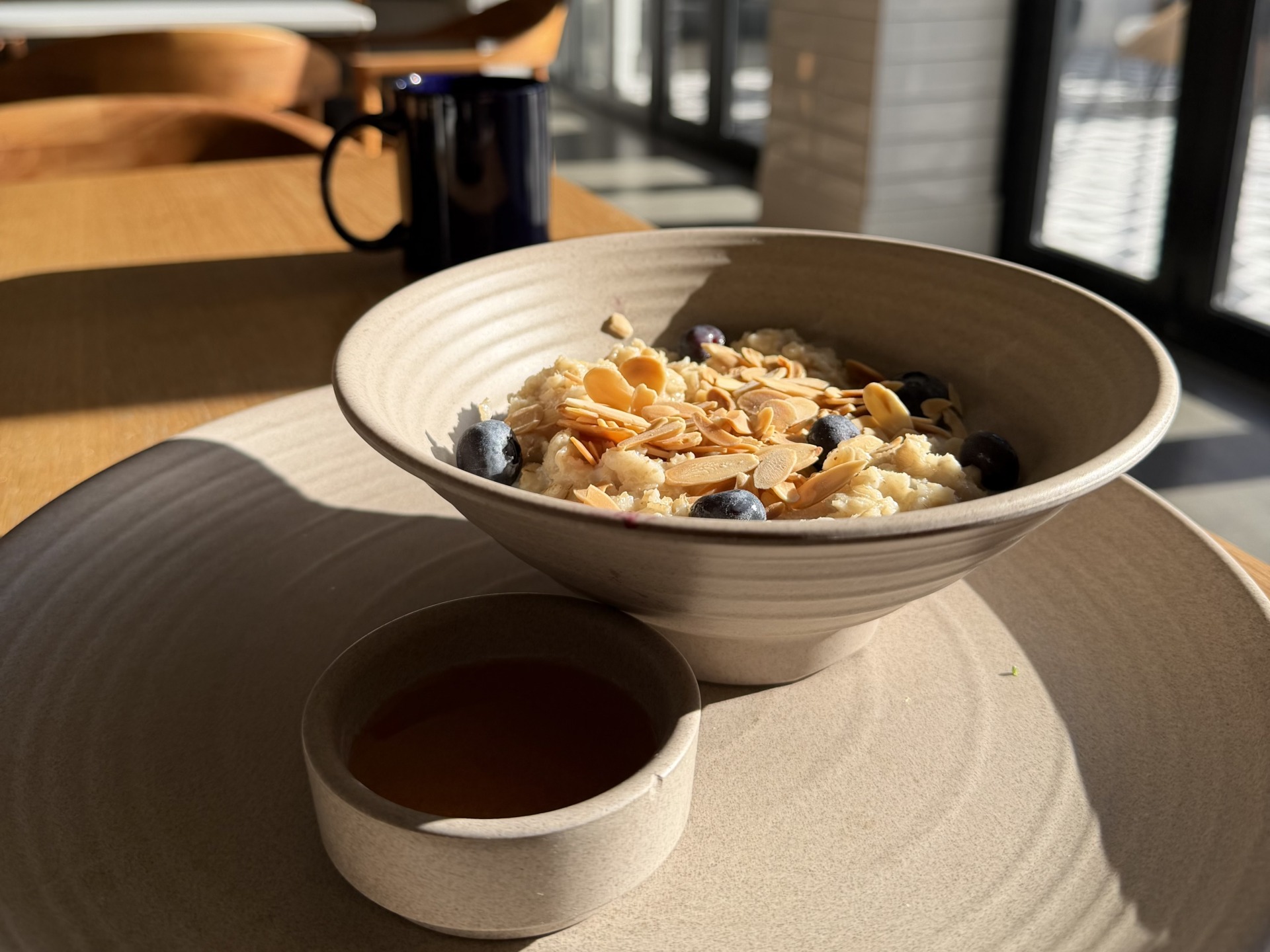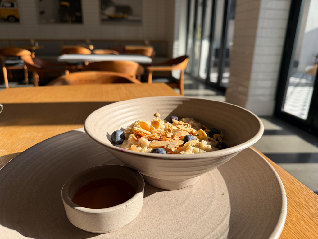 As I’m trying to be more conscious of foods that give me energy vs empty calories, I continued with an order of HOUSE OATMEAL (cinnamon syrup, blueberries, oat milk, shaved almonds).