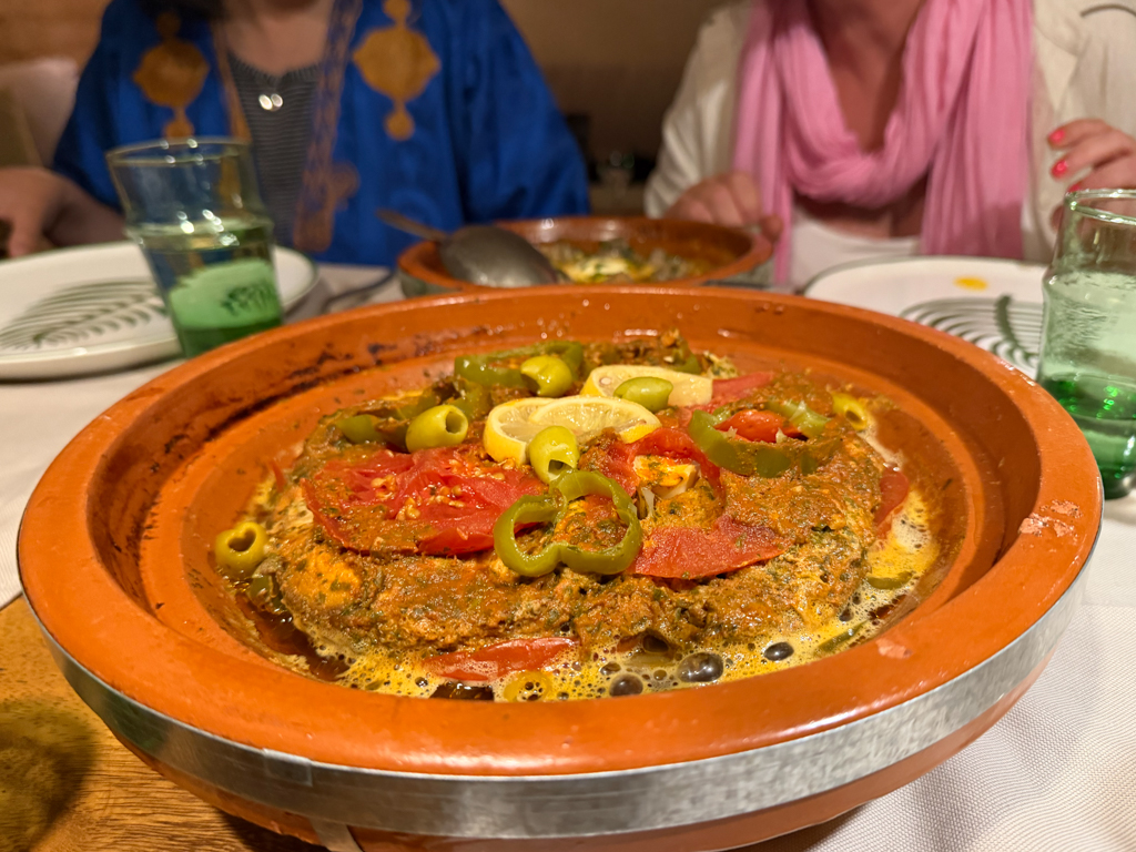 The main course? A brilliant Fish tagine of dorado (mahi mahi). After having such intense flavors of lamb, goat, chicken and beef tagine throughout the regions of Morocco, the fish was a refreshing change of course.