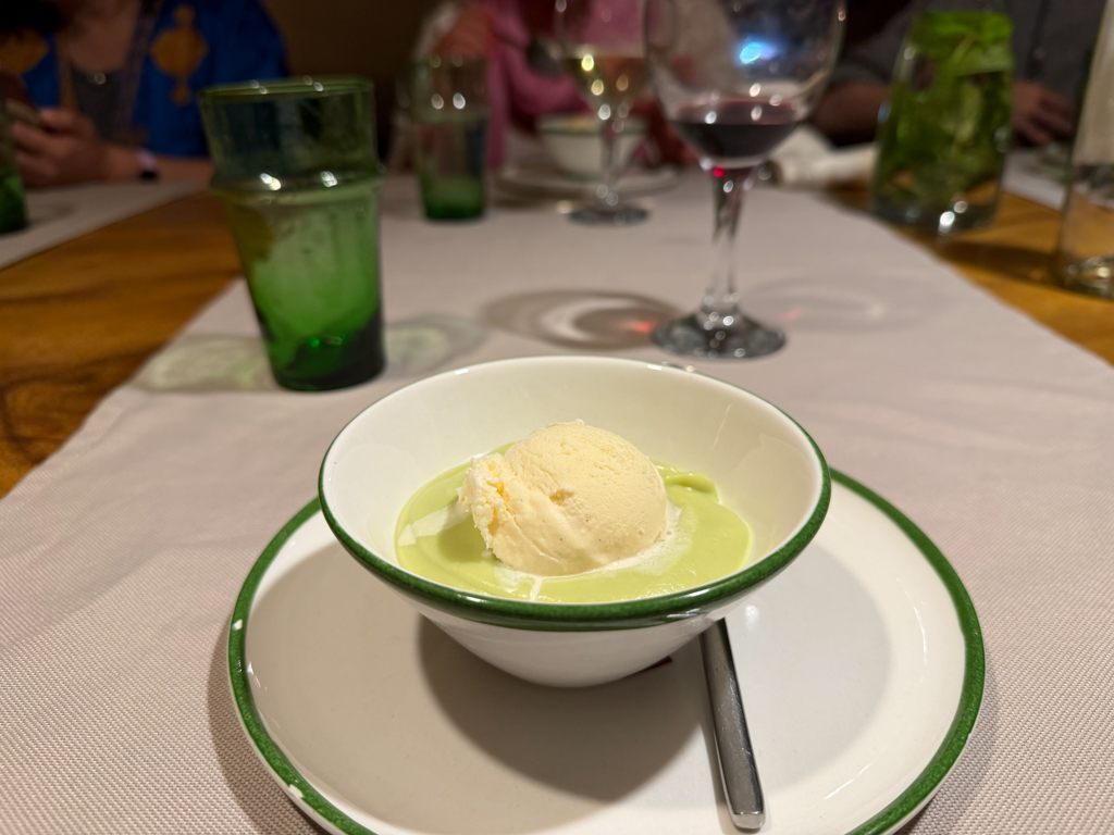 To finish the meal, we were served bowls of vanilla ice cream on top of whipped avocado.
