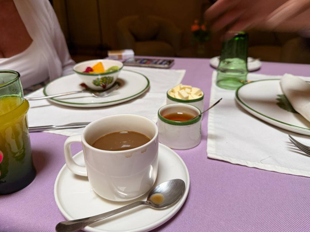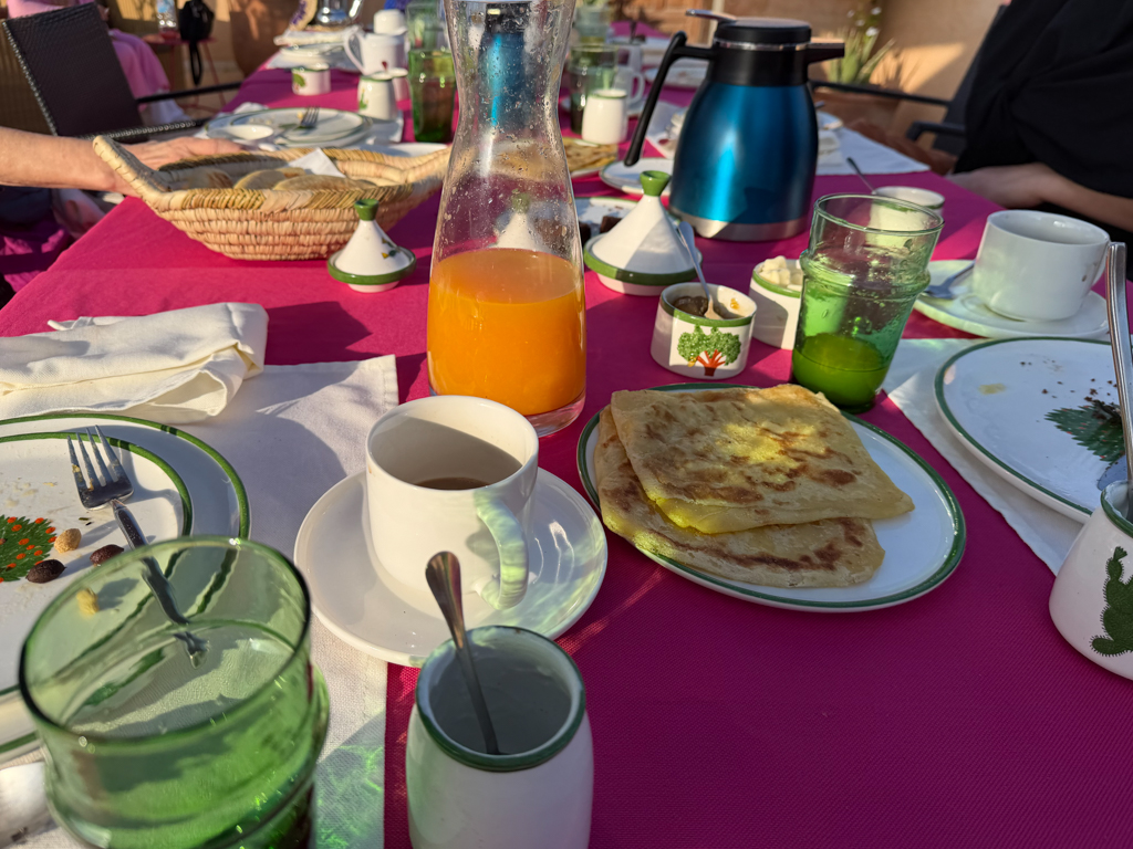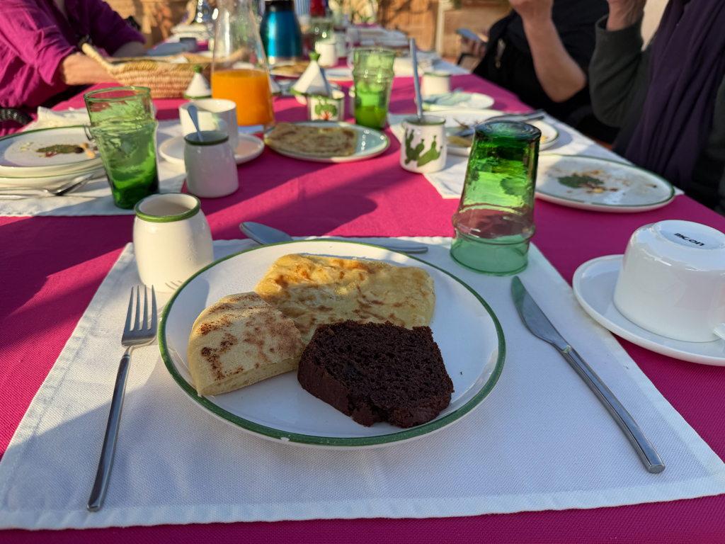 My last breakfast at Riad Siwan was a rather low key affair. I enjoyed yogurt, fresh orange juice, cornbread cake and a crepe with apricot preserves while I drank coffee and reflected on the journey.