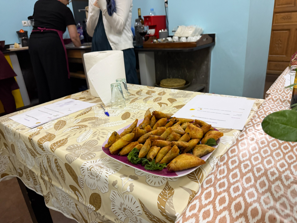 Our second dinner at Riad Siwan was a beautiful cooking class affair.