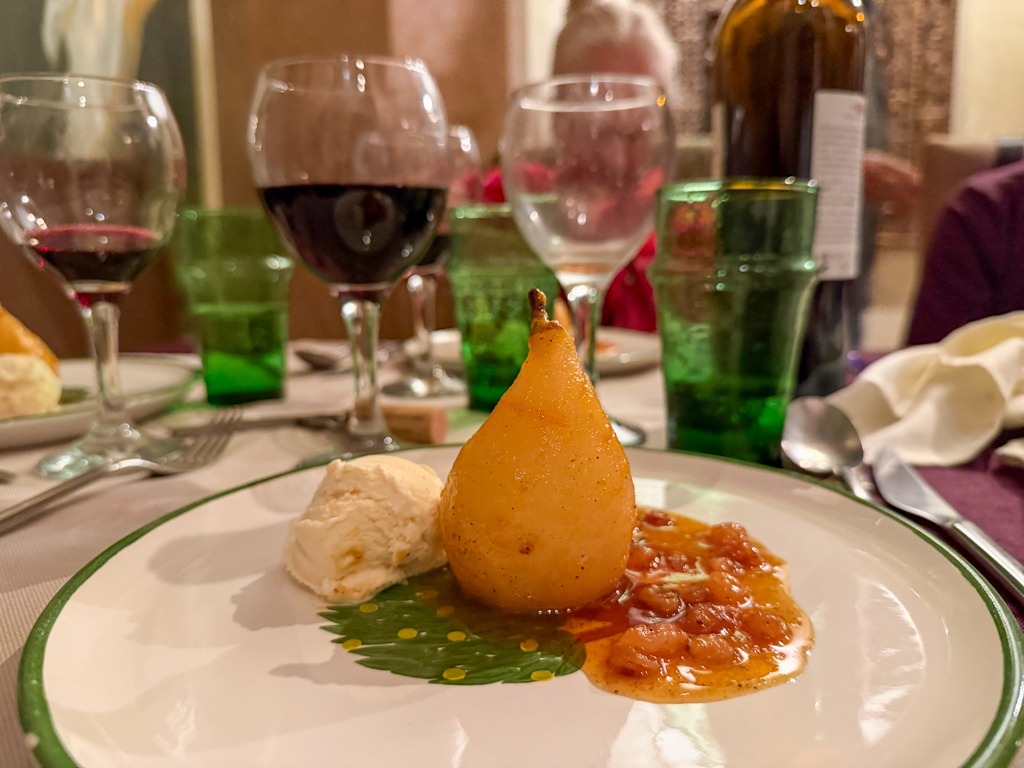 The main course of the evening Beef Tangine with walnuts and plums was – incredible. Especially, because it was cooked with Fran’s assistance in the kitchen.