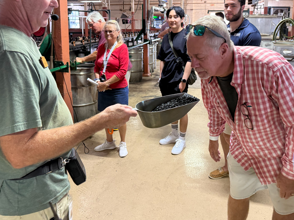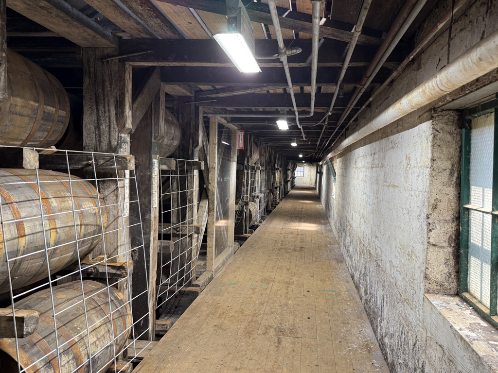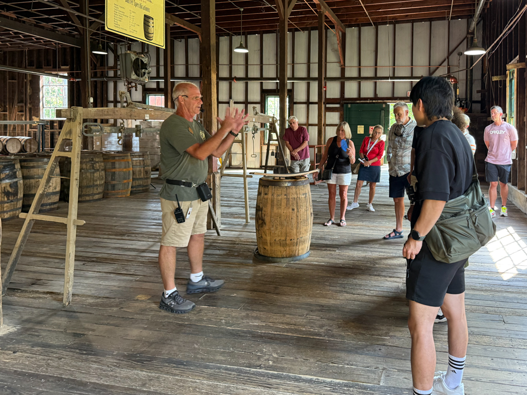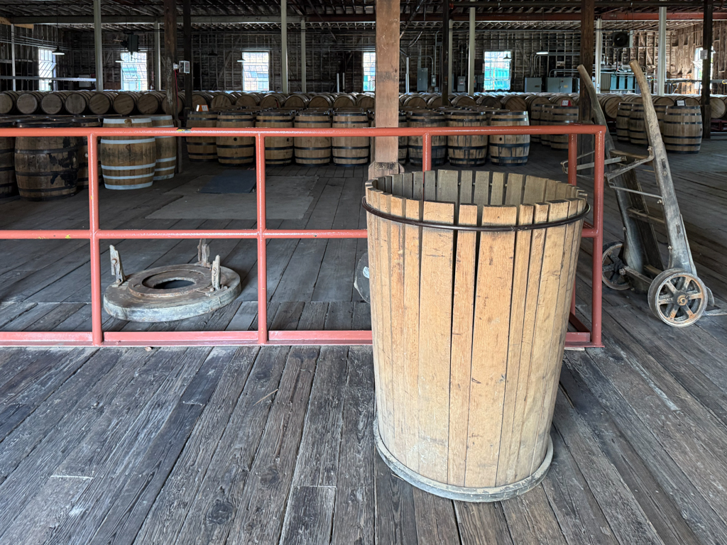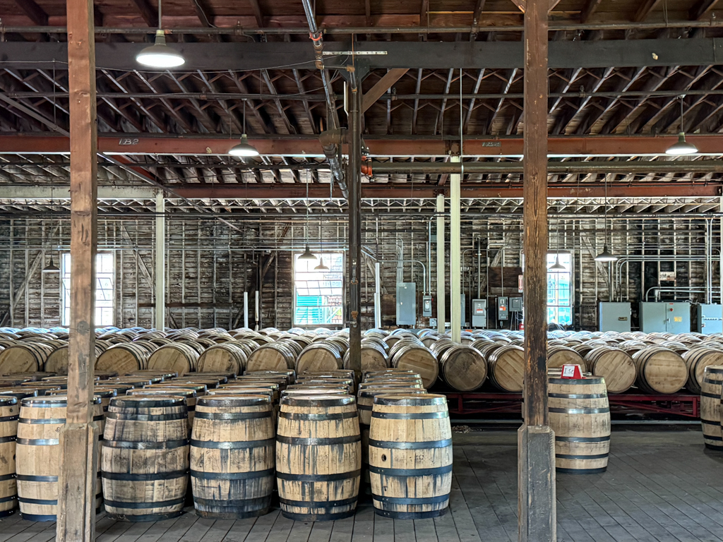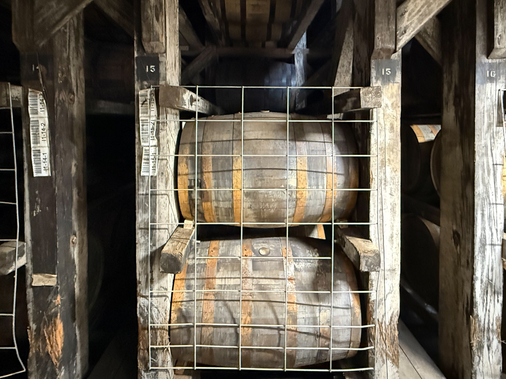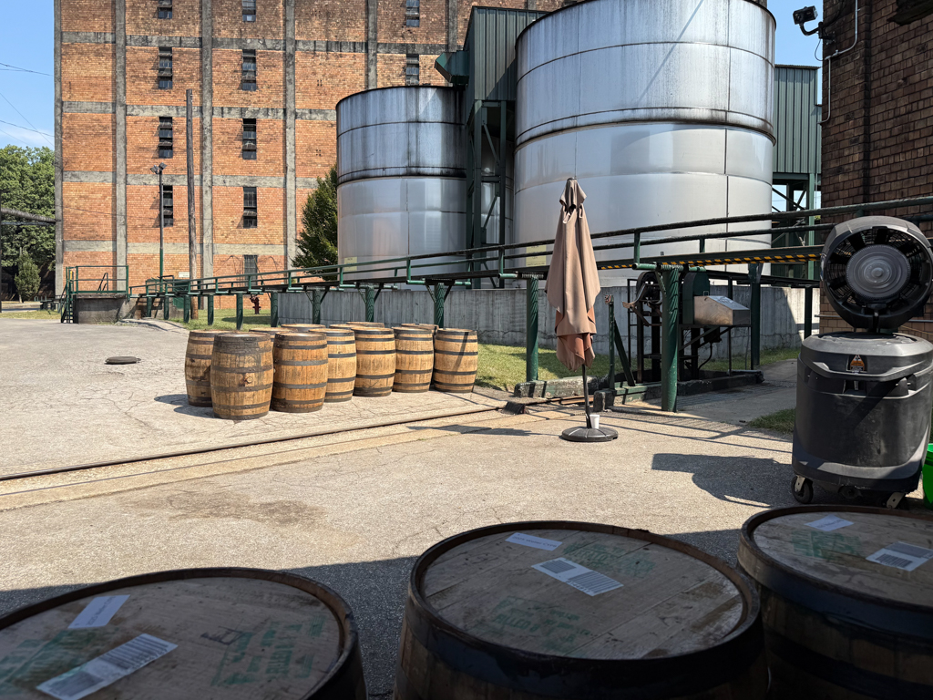 Allan, our tour guide, was both knowledgeable and entertaining. He explained that bourbon ceases to age if the temperature falls below 44°, which is why steam is pumped into the warehouses during winter. He also highlighted the scale of the operation: 2,200 – 2,300 white oak barrels filled every day, and one of the only distilleries in the world with its own cooperage.