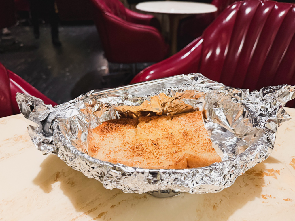 The garlic toast was rich and buttery. Yet – not overpowering with taste. It was delicious, saturated goodness.