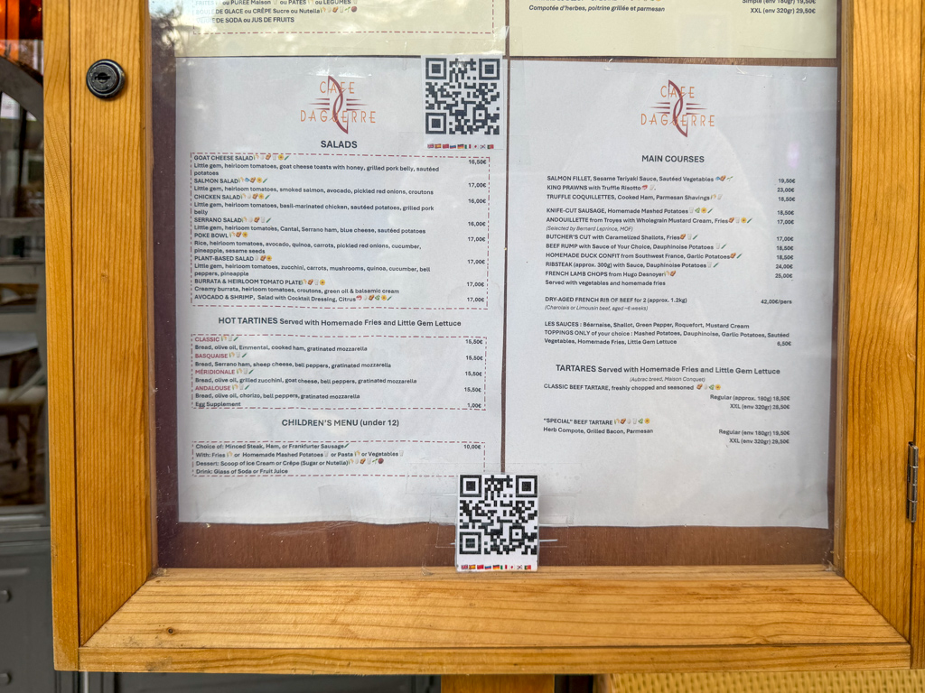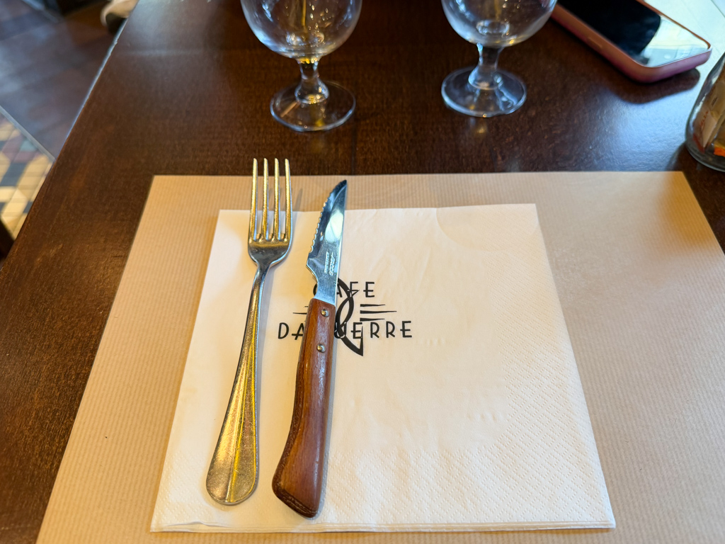 We wandered among a few bistros, scanning menus, until I suggested we stop at Cafe Daguerre. Amy agreed, and we took a seat.