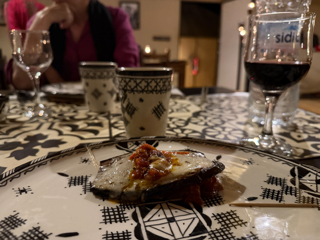 For our vegetable course, we were served tagine with eggplant topped with cheese.