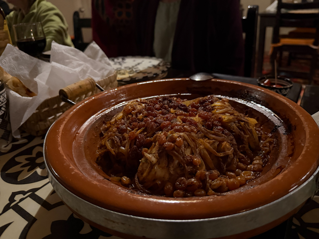 Our main dishes: shared tagines of Chicken and Beef were delicious.