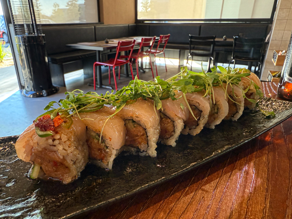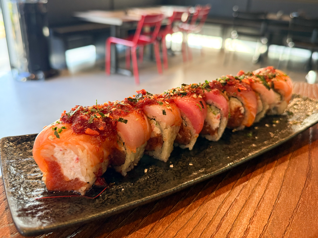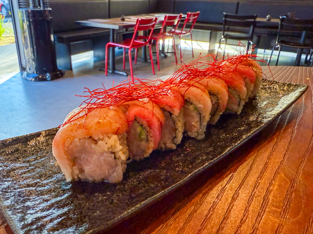 The rolls looked enticing and absolutely delicious. So, I order the Carbon Roll (Inside: Spicy Tuna, Snow Crab, Cucumber. Top: Bluefin Tuna, Albacore, Salmon, House-Made Chili Garlic, Lime, Sesame Seeds)….