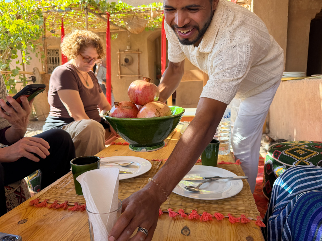 After a morning of group experiences – Into the Skoura Valley: The Gorges, Bara Essence Rose Water and Kasbah Amridil – it was time for lunch.