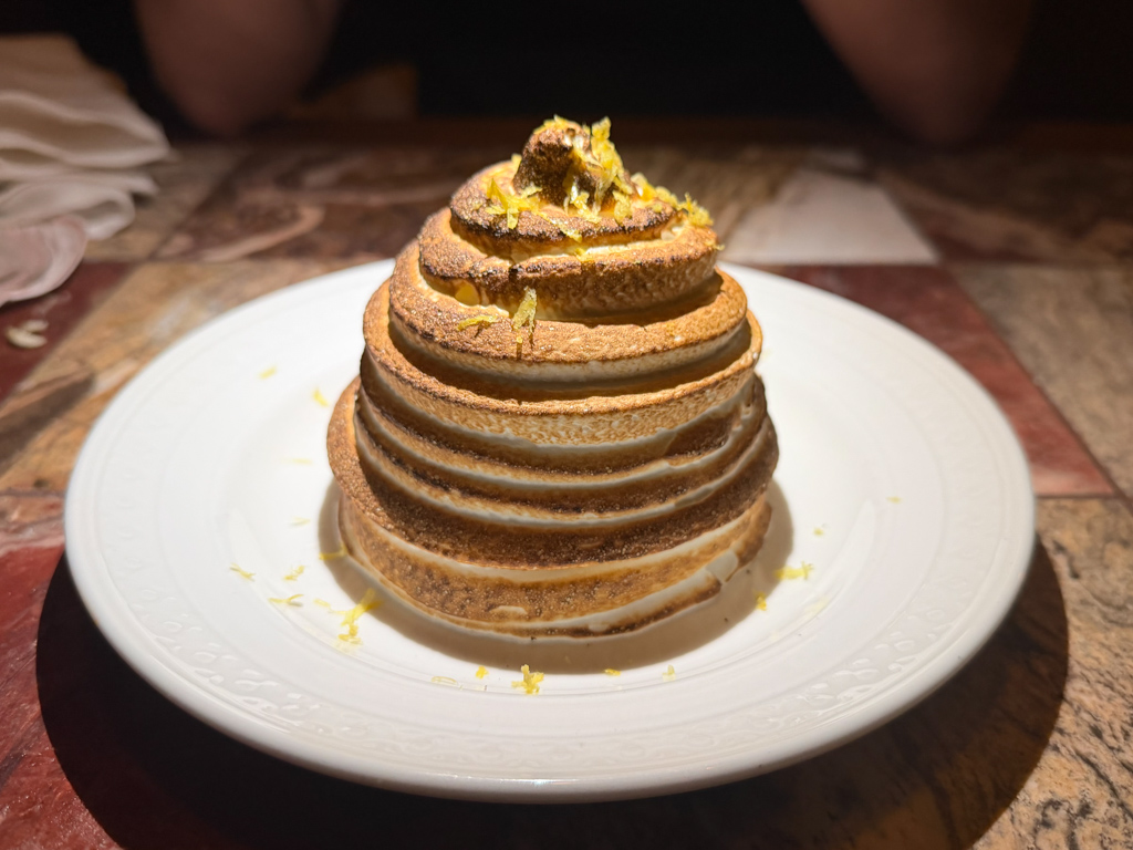 As we ended on the LEMON BAKED ALASKA (lemon custard, meringue, vanilla ice cream), we were both in a state of exquisite fullness.