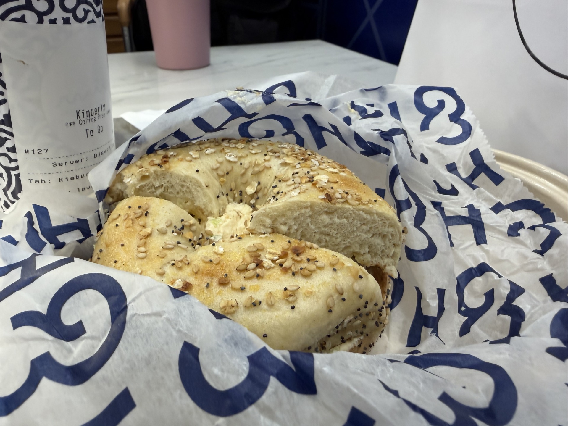 So, when I found myself at the Amtrak Moynihan Train Hall, I wandered around the Food Hall for solutions to my hunger. After stopping for a coffee, it was time to find a bagel for breakfast.
