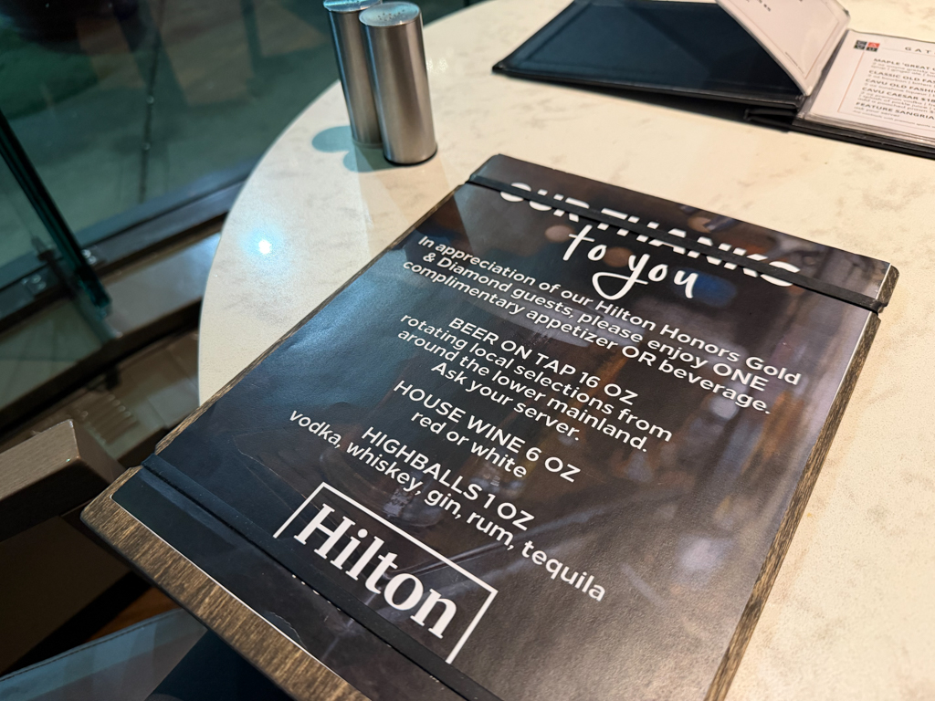 I wasn’t able to have breakfast, due to needing to leave before 6am to deal airport arrival and customs for my morning flight to the United States. But, I appreciated that it was available to me. And, I appreciated the Hilton Honors treat menu.