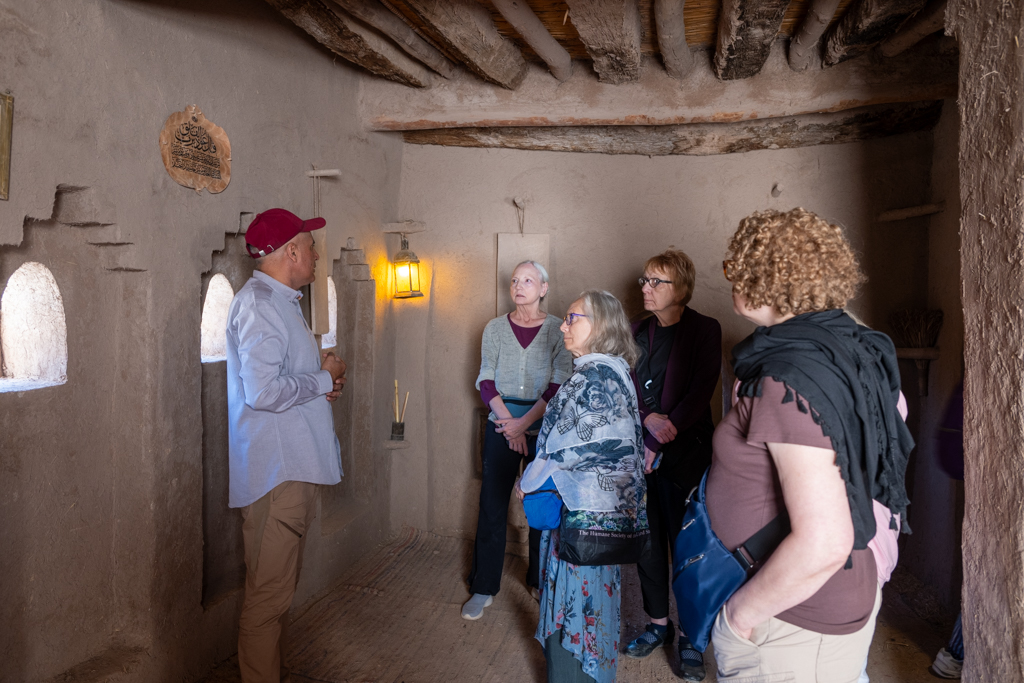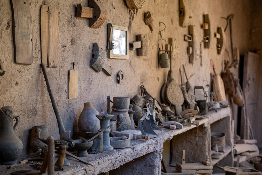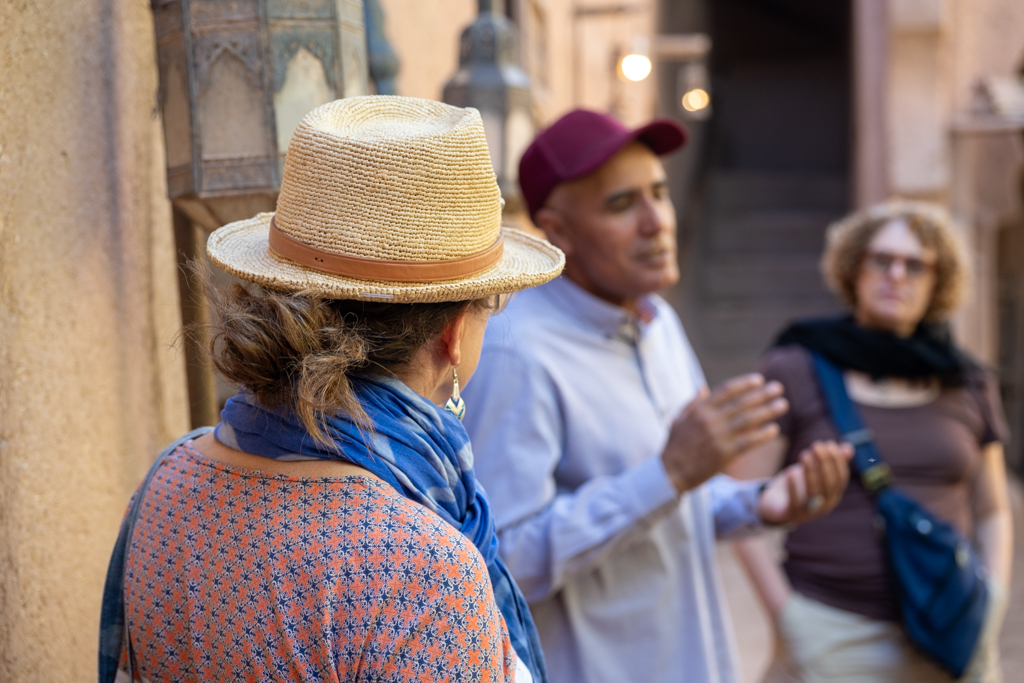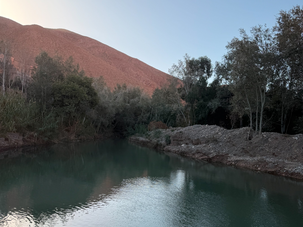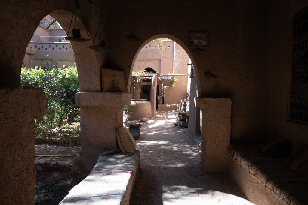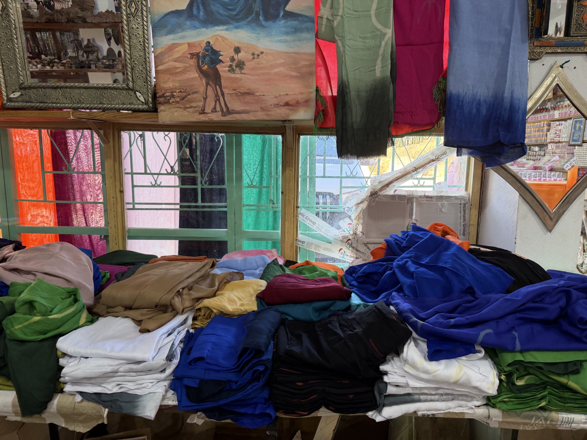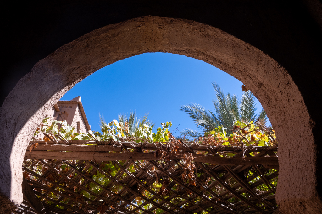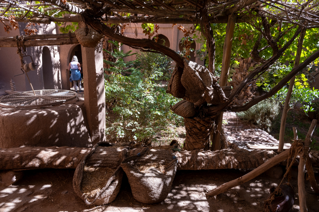 The oasis around it once supported caravans traveling between the Sahara and major cities, providing water, fertile soil, and shade from its thousands of date palms. Our guide walked us through the kasbah room by room, allowing us to explore every nook and cranny, from the kitchens and grain stores to the rooftop terraces with views of the palm groves.