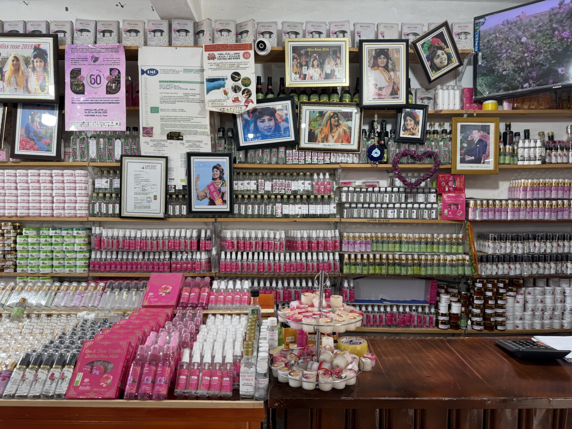 Inside, an array of rose products lined the shelves alongside clothing and scarfs.
