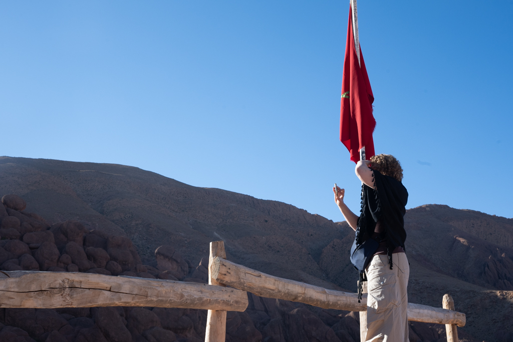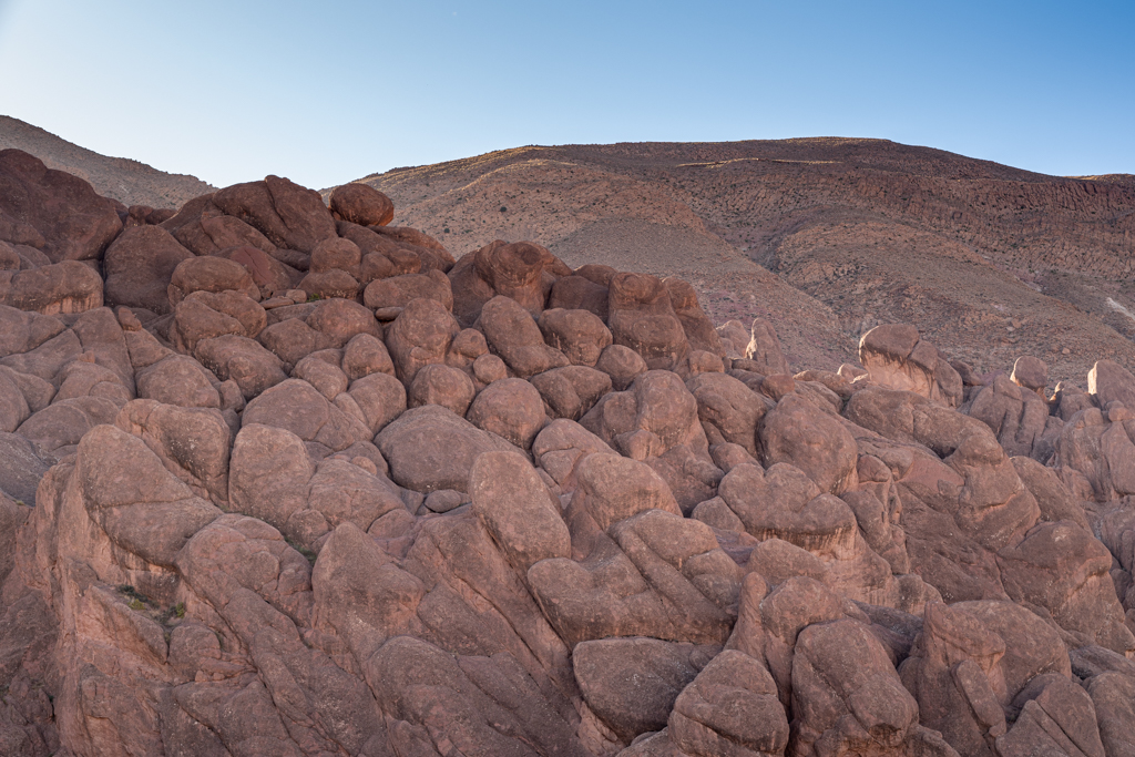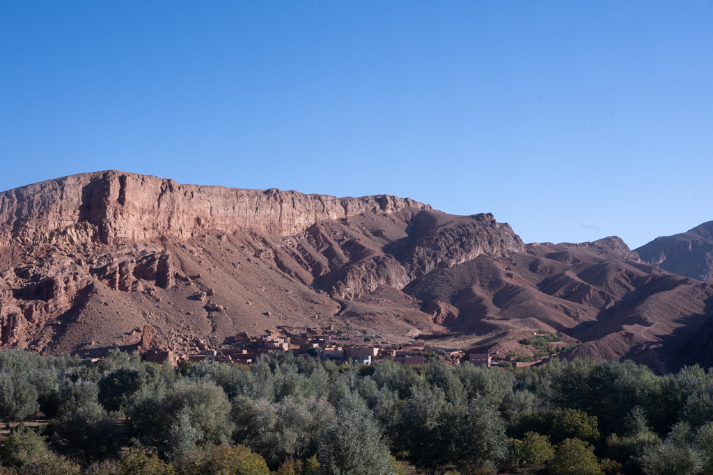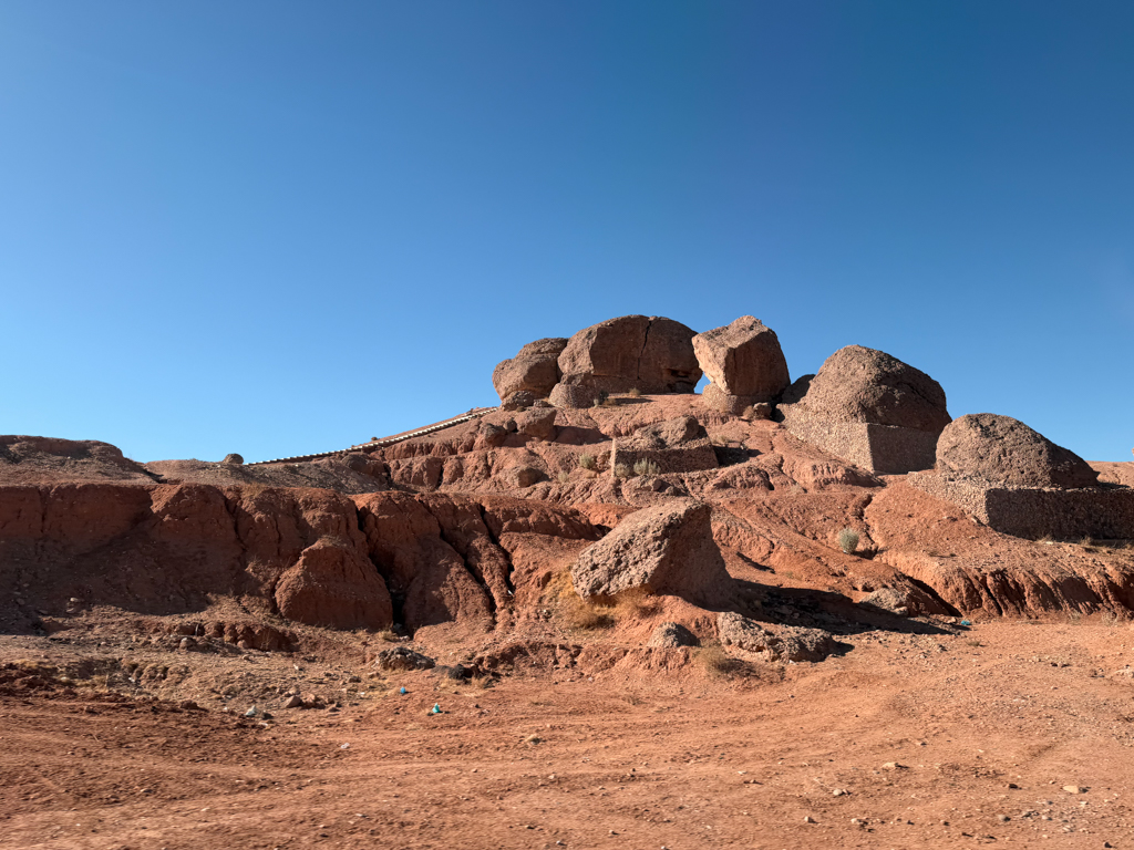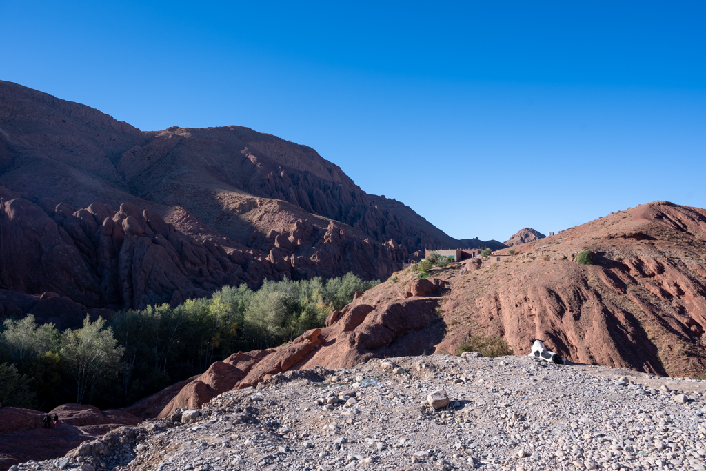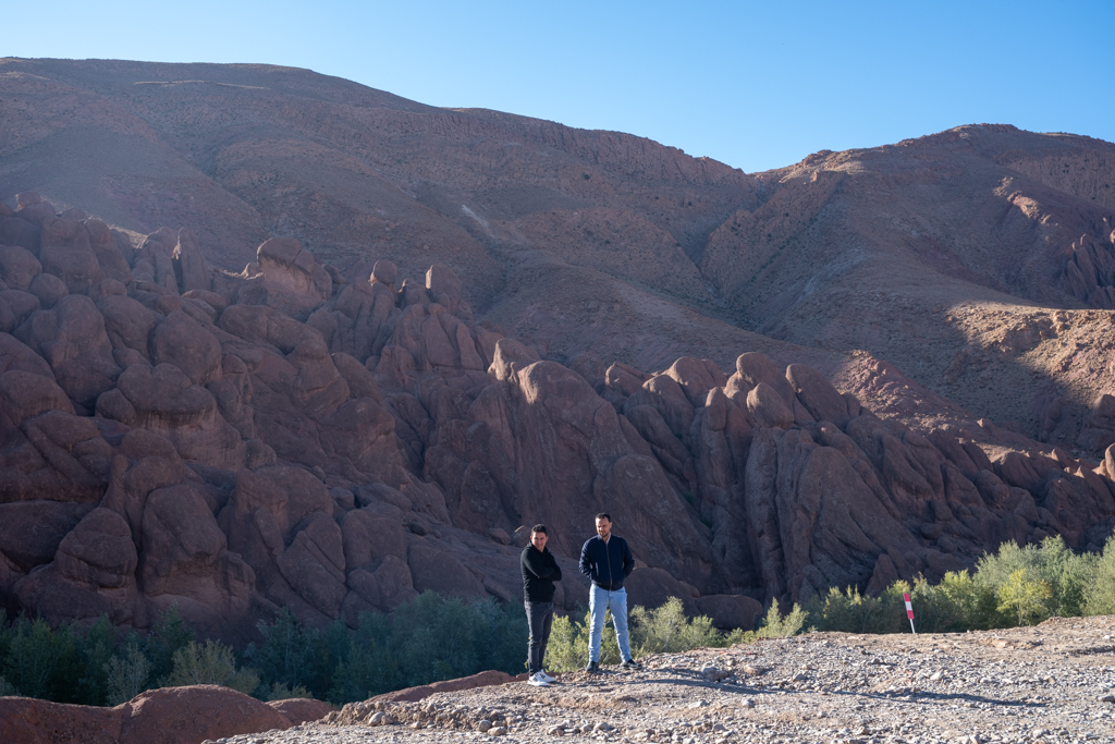 The Dadès Gorges, carved into the red and rose-colored rock of the Atlas Mountains, offered some of the most striking landscapes I saw in Morocco. The winding road revealed steep cliffs, unusual rock formations shaped by erosion, and small villages built into the mountainsides. We stopped at the Monkey Fingers Viewpoint formation, and I took some photographs.