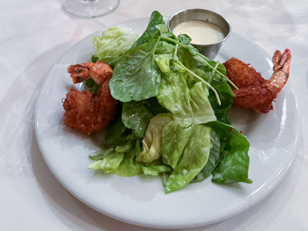 For my starter, I ordered the Coconut Shrimp & Curry Sauce (Watercress & Honey-Lime Vinaigrette).