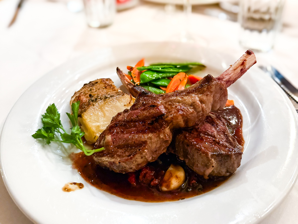 The main course, Rack of Lamb Chops (Dried Tomatoes, Spinach and Demi Glace), arrived beautifully plated with vegetables and potatoes as additional sides.