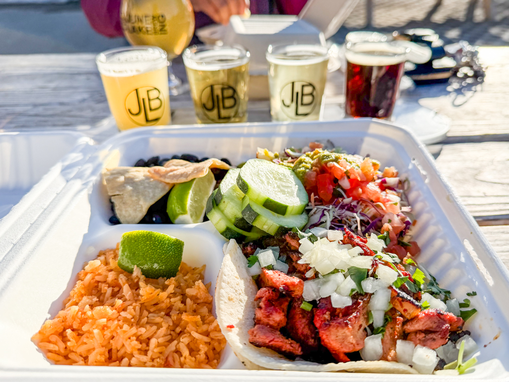 After a lovely afternoon snowboarding River Run at June Mountain, it was time for lunch. As Deja and I made our way to June Lake Brewing, she spoke highly of the taco truck out front. Once we arrived, I was excited to fill my stomach with delicious food while drinking local beer.