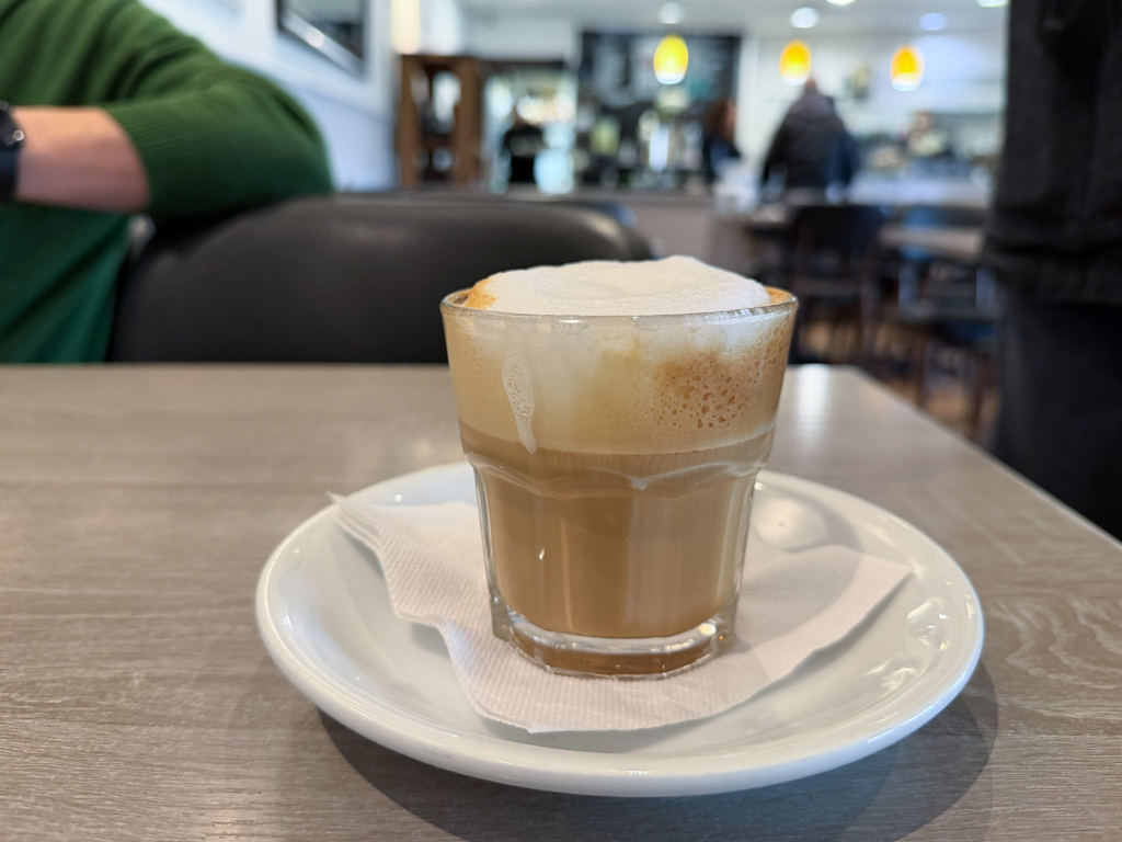 I order a cappuccino. I greatly appreciated the warmth and coziness of the feeling of the cup in my hands.
