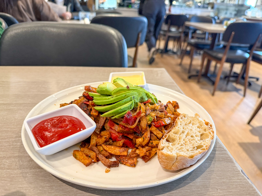 When my Mo’s Hash (Turkey bacon, chicken sausage, short rib, onion, peppers, potatoes, 2 eggs, hollandaise – sub eggs for avocado) arrived, it was the best combination of everything I’d wanted for breakfast.
