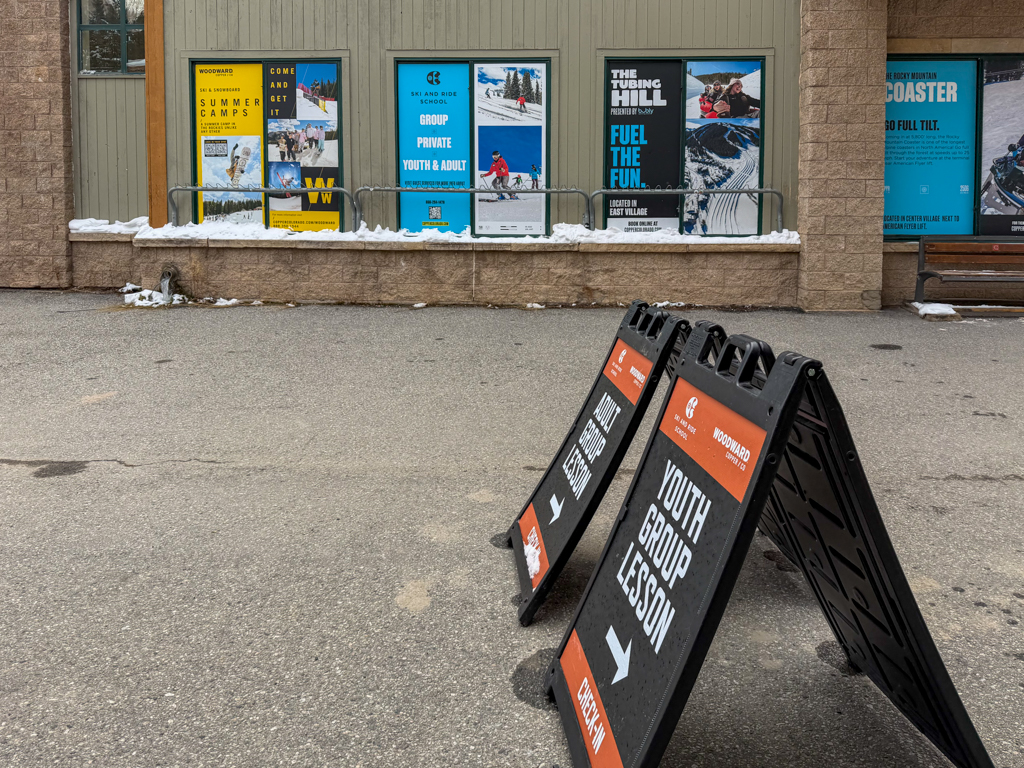 As I arrived over an hour before the lesson was supposed to start, parking was easier than I expected. Driving around the mountain base, I noticed that certain parking lots were $40. A quick call to the information line gave me the information I needed: the free lot – Alpine Lot – was a short drive down the road. So, within a short drive, I’d parked, gotten my snow bag and was off.