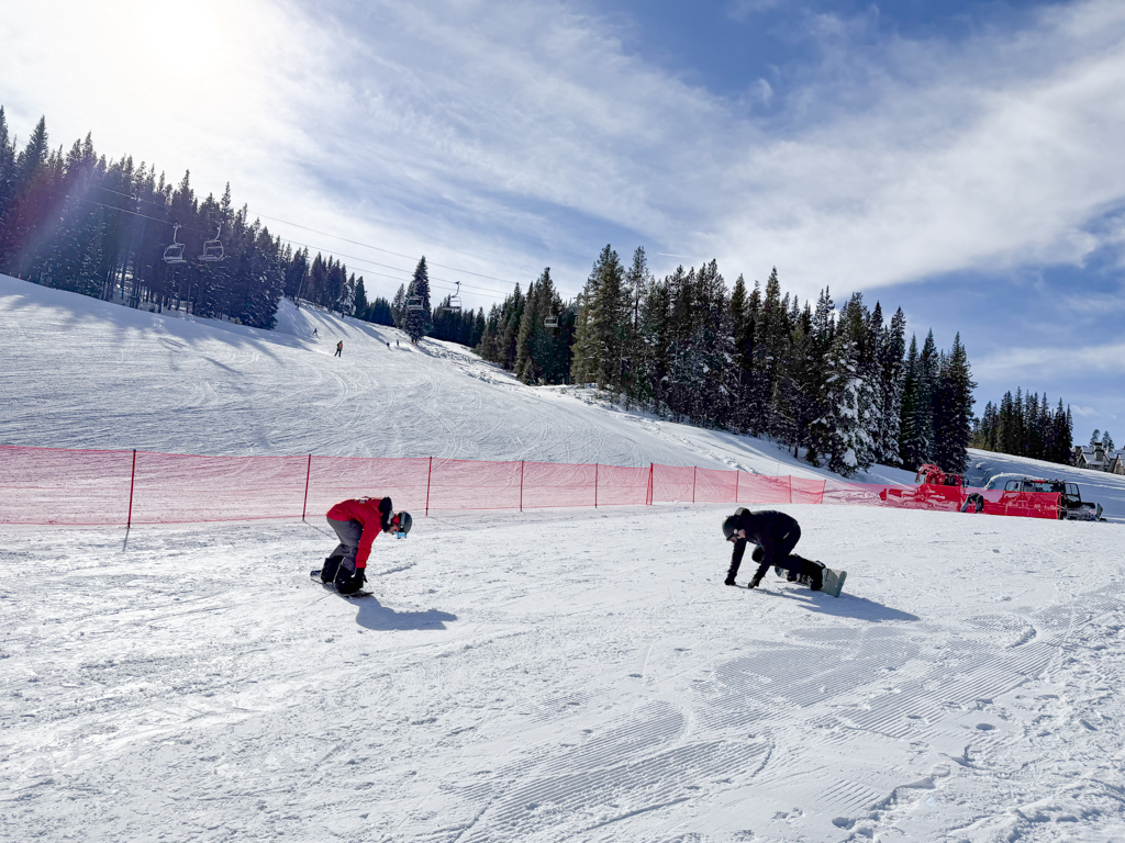 Mike led us through various drills to gain our strengths, including Heel Side Edge and Toe Side Edge riding. As I’d solidified about myself during my Adult Group Snowboarding Lesson at Breckenridge Resort, I’m much better at heel side boarding. I’d practiced toe edging during my Adult Group Snowboarding Lesson at Mountain High Resort. But, I had anxiety about feeling so off balanced.