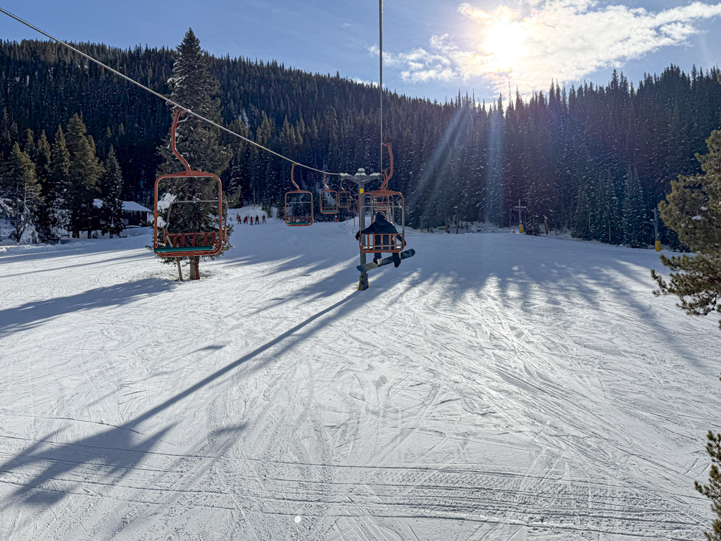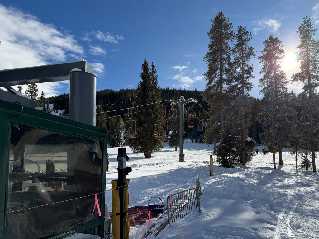 Taking the bus was a welcome respite. But walking toward the Green Acres’ lift, I felt challenged. At first, I was confident with skills my body remembered from earlier in the day. However, the difference between my non altitude adjusted body and the others – who lived in Denver and Frisco – were clear. I was struggling in walking. In retrospection, I should have prepared my body a bit more that morning by stopping in Frisco and eating a proper meal. But, beyond fumbling over the toe side edge riding, there was one more skill that I’d come determined to master: getting of the ski lift properly.