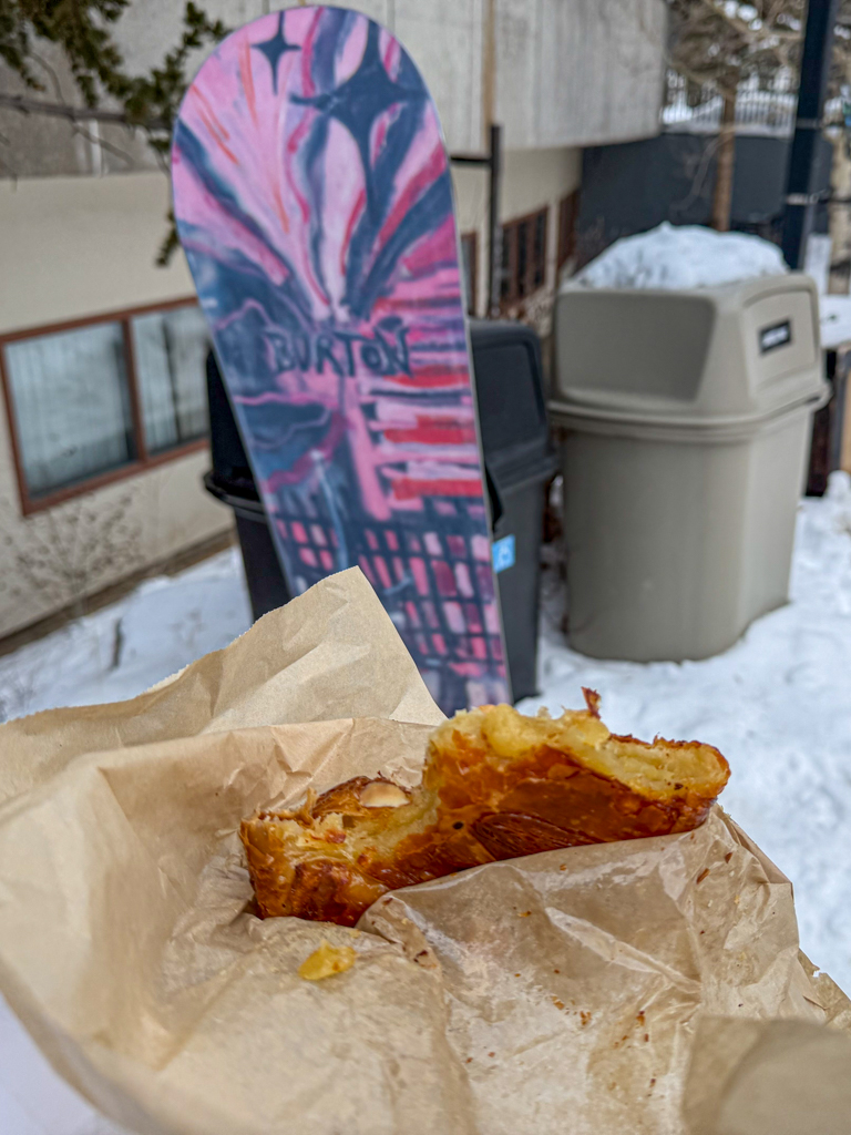 Since arriving at Copper Mountain, I thought I’d set everything up well. Parking? Check. Changed into my snow gear? Check. I even found myself in a nice conversation with another snowboarder who was from Vermont. Again, I thought I was good on time. I even grabbed an impromptu breakfast of an almond croissant at Camp Hale Coffee and walked to the shuttle circle.