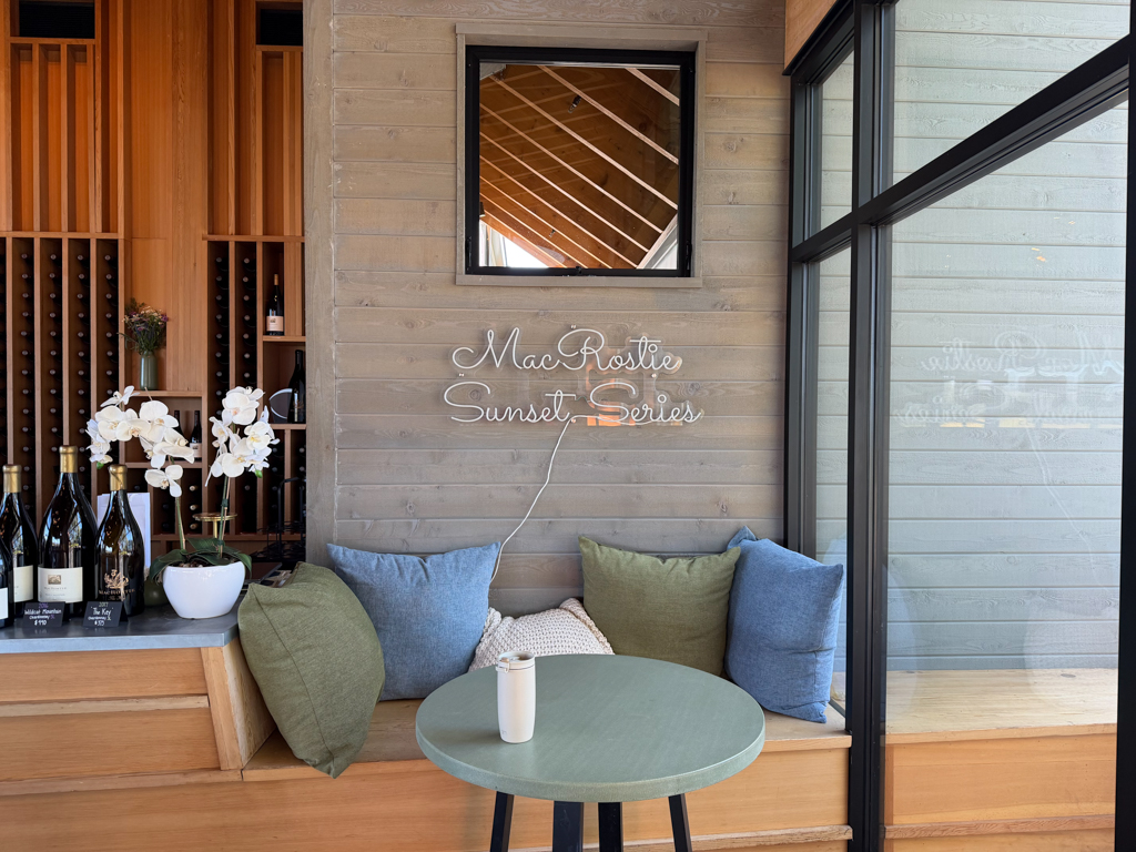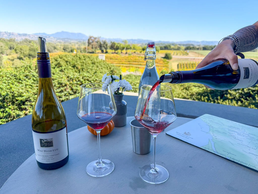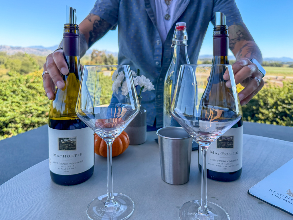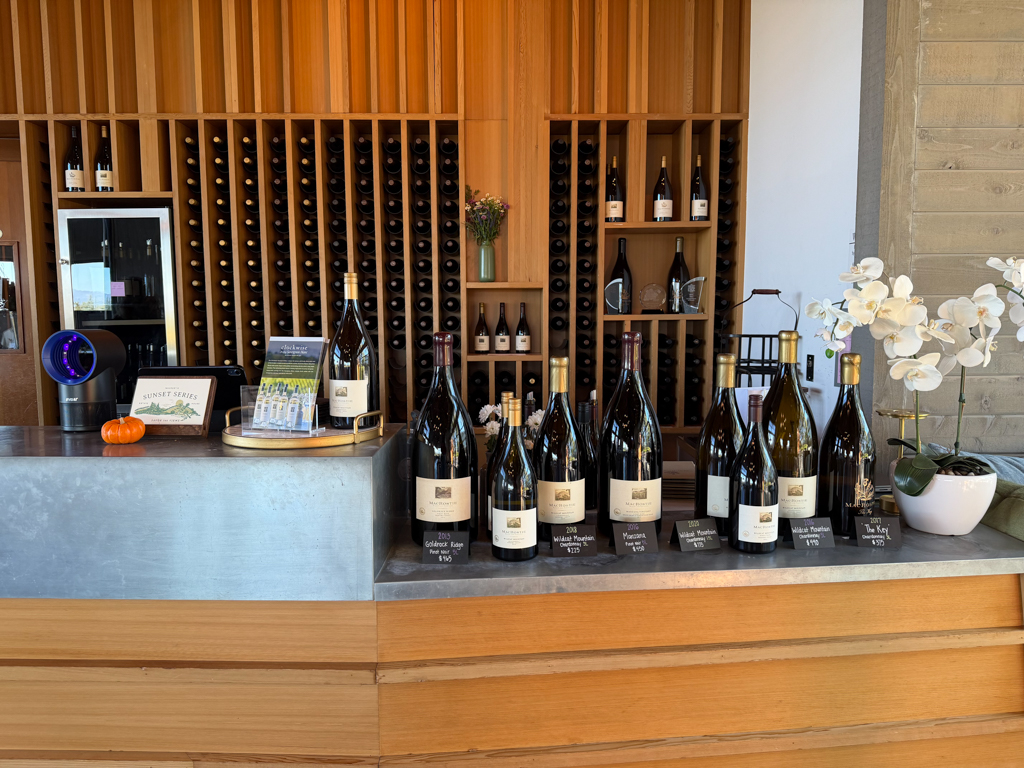With delightful conversation amid gorgeous surroundings, I felt at home with Season’s hospitality. She supplemented my flight with pours of 2022 Gap’s Crown Vineyard Pinot Noir (Petaluma Gap) and 2021 Nightwing Vineyard First Flight Pinot Noir (Petaluma Gap).