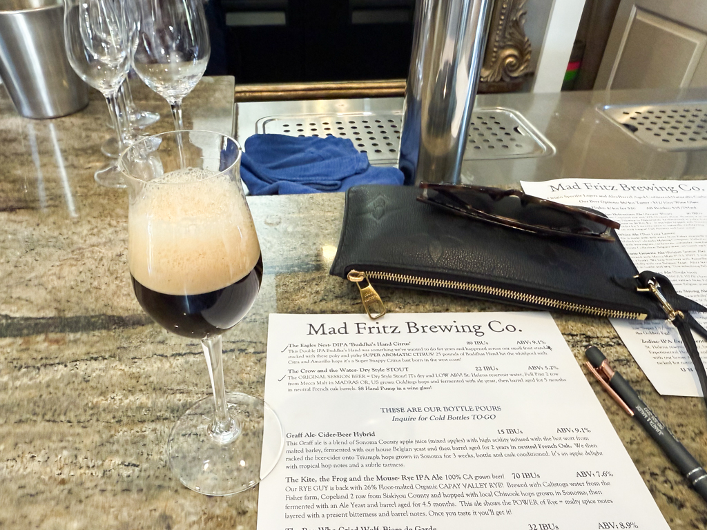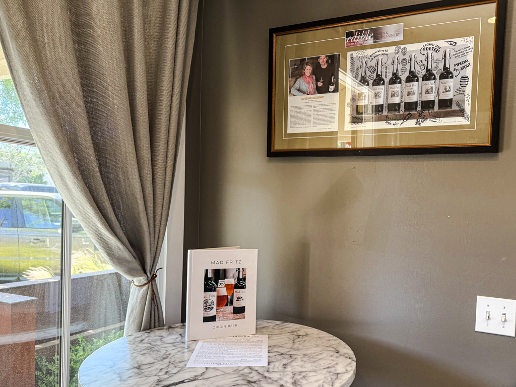 I first heard about Mad Fritz from Roberto at Robert Biale Vinyards. I messaged him that I was heading to Napa once more, and would love it if he could recommend some spots that he loved. Immediately, he suggested the beers at Mad Fritz Tap House.  So, on my second day, I drove from my stay at The Lodge at Healdsburg and was soon walking through the doors of one of the most fun tasting rooms in Yountville.