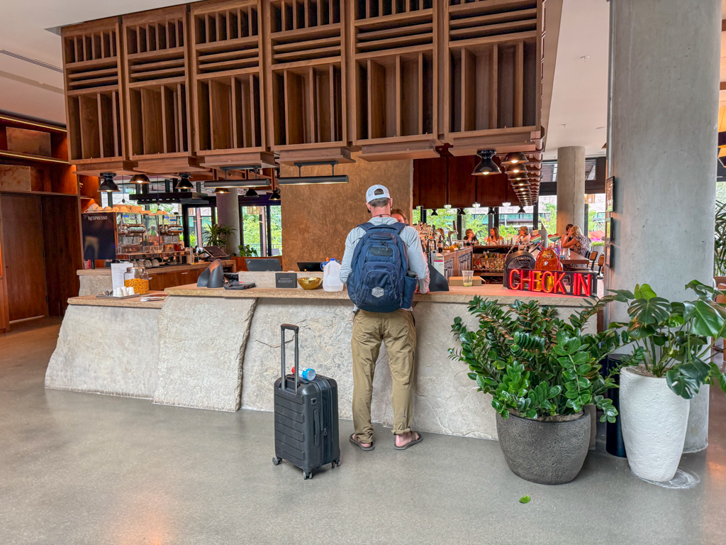 And after that, the agent tried to wave me away, as in her waiting, a line had formed behind me. However, that line was not my problem. Like she’s seemingly easily done with the guy before me, I asked her about breakfast, the hot tub, the bar and where the elevators are.