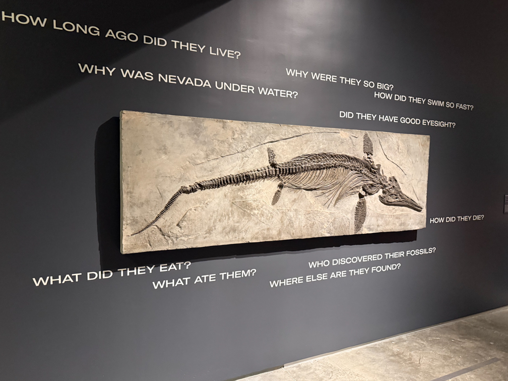 We began our exploration with the “Deep Time: Sea Dragons of Nevada” exhibit, and I can honestly say: my mind was blown. I had no idea that Ichthyosaurs -a species of massive marine reptiles – once swam through ancient seas where the Nevada desert now lies.