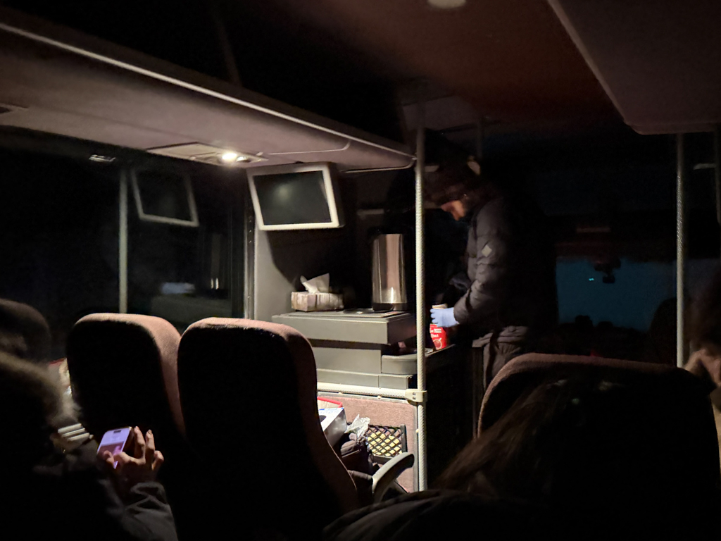 Our guide made us coffee and hot chocolate within the bus. As she passed each individual request around, I felt so – taken care of. You don’t know the difference – until you know the different. The hot drink in my hand steamed as I reflected that I wished I’d picked this tour, the first night.