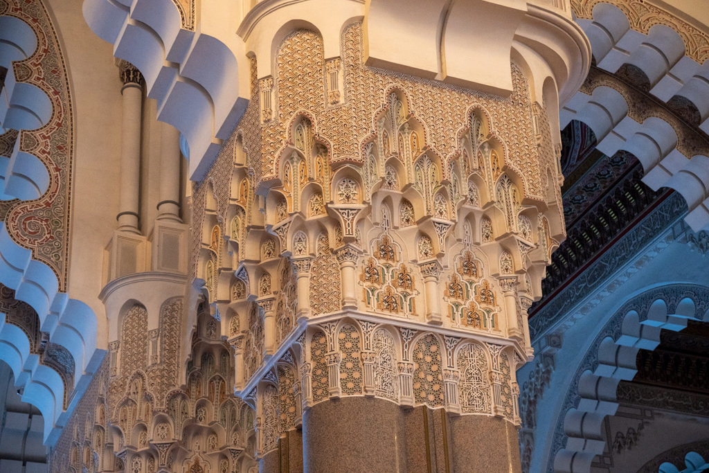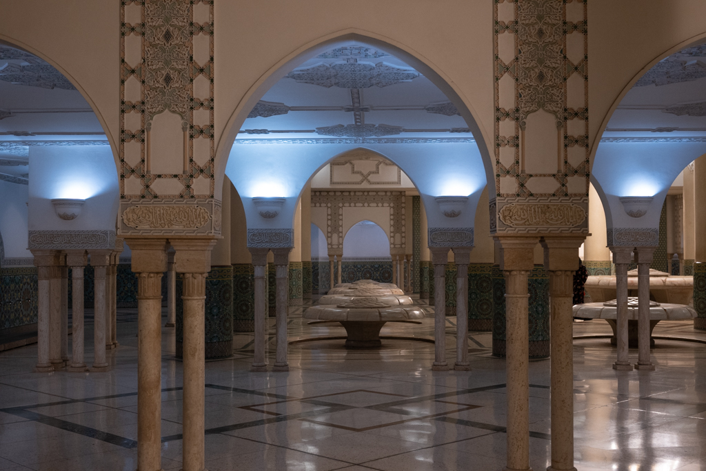 As she led us around the space, Ashia explained that part of the mosque is literally built over the ocean, supported by massive pillars anchored into the ocean – an intentional nod to a Quranic verse and Morocco’s long-standing connection to the sea.