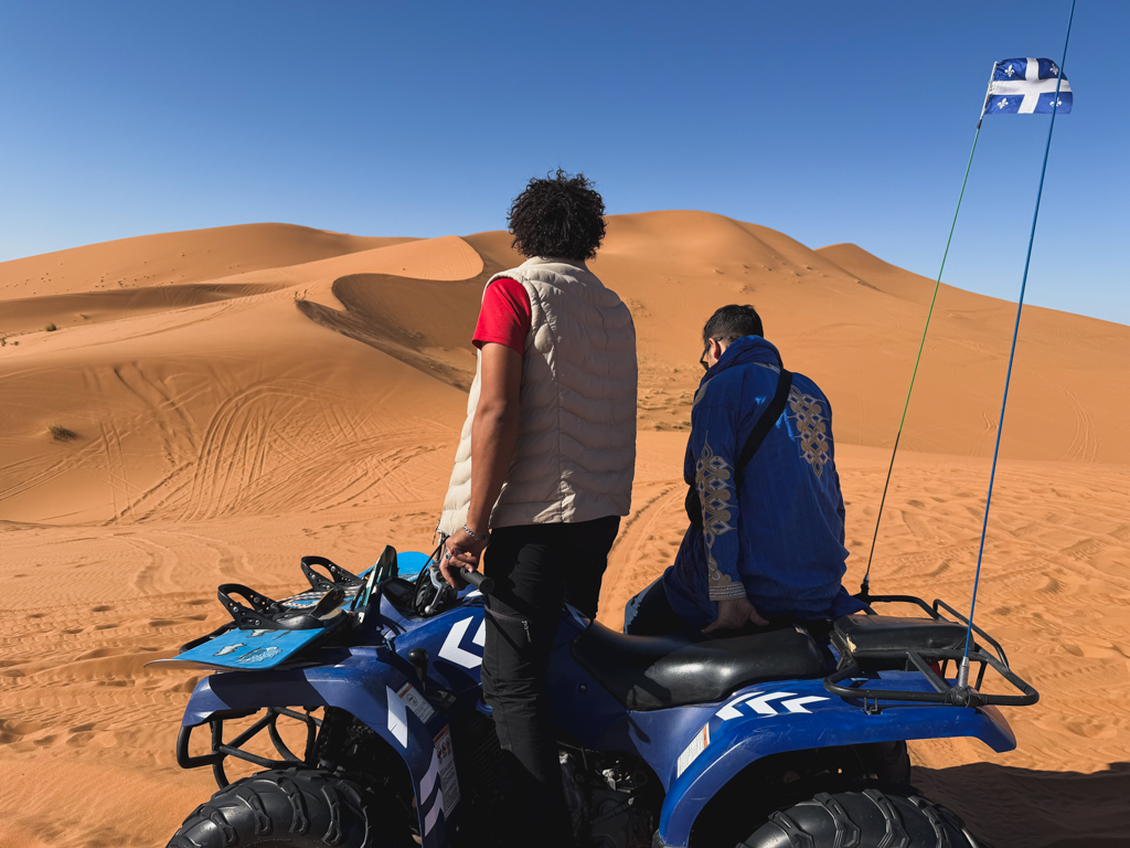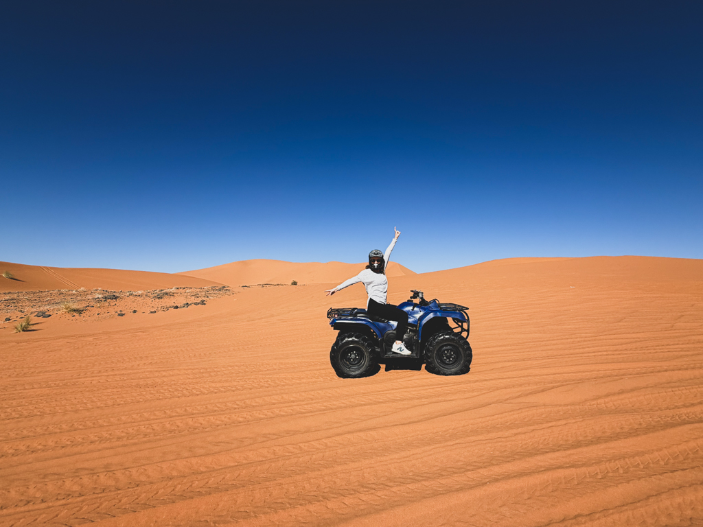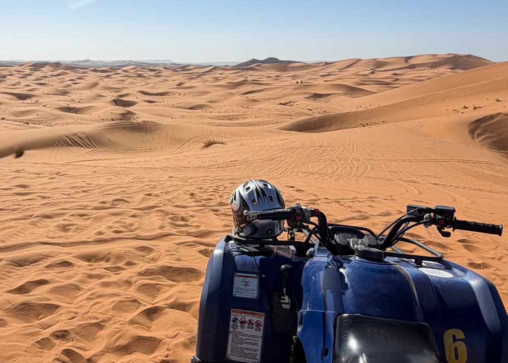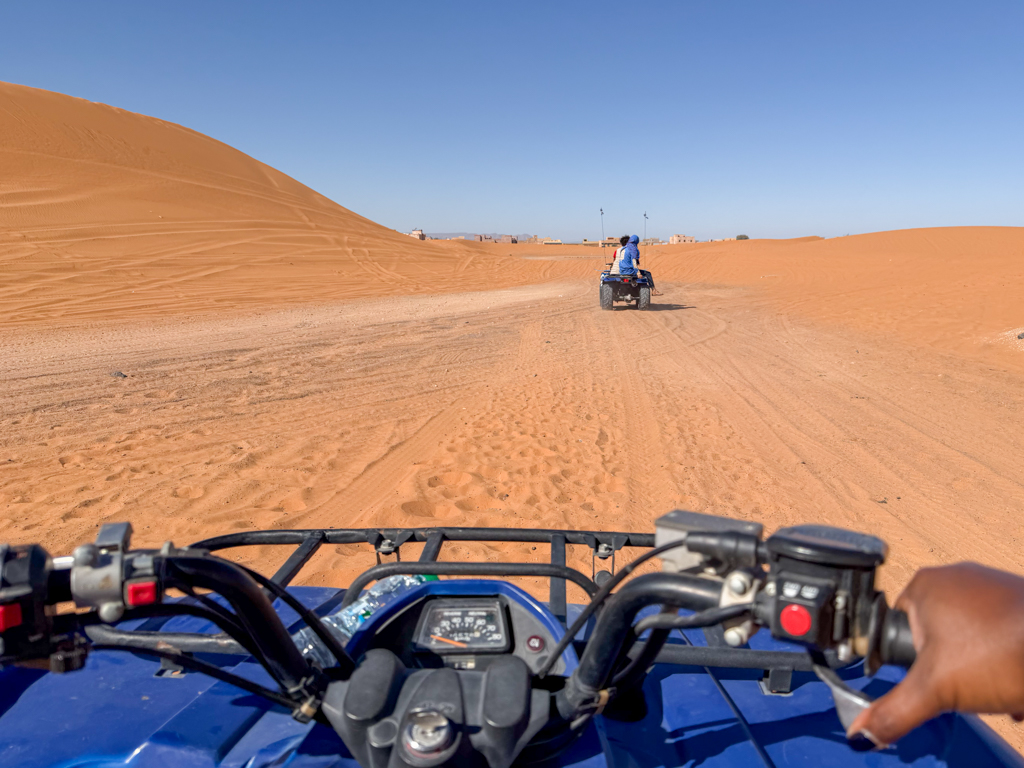 In a strange way, facing the very thing I’d dreaded brought relief. And just like that, we were off again, with Rachid still casually perched on the back of our guide’s ATV, and me moving forward as if the desert had never spooked me at all.