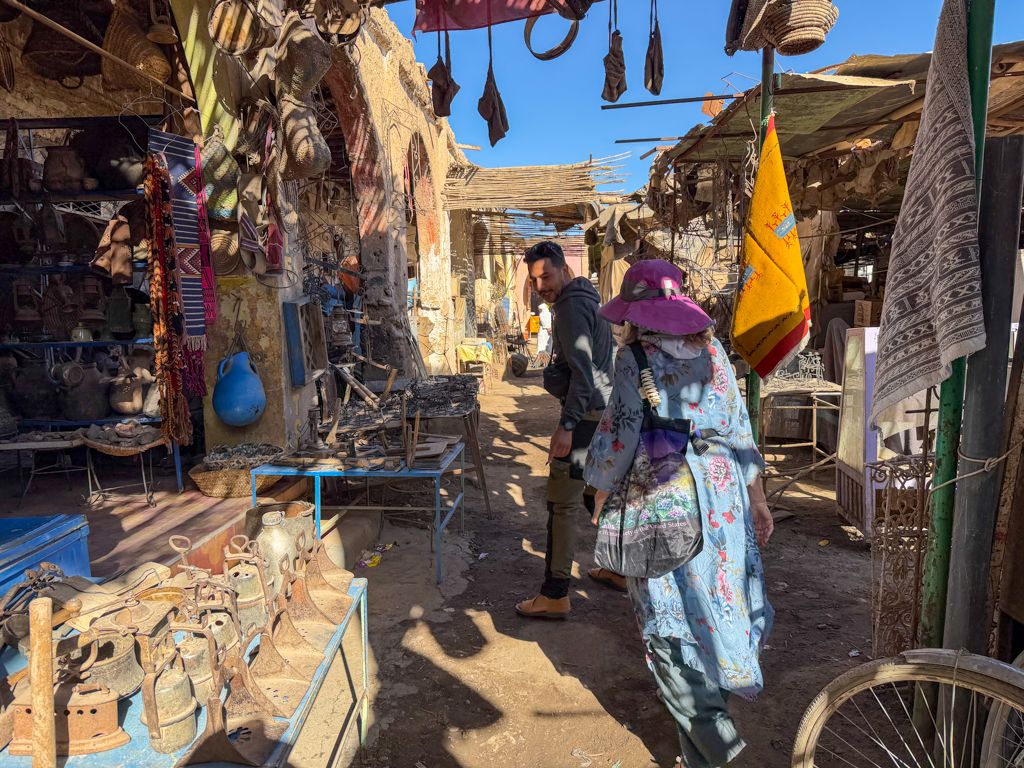 The medina’s artisan areas showed another side of the region’s craftsmanship. At the metalworker area, sparks flew as artisans hammered brass and shaped decorative pieces by hand.