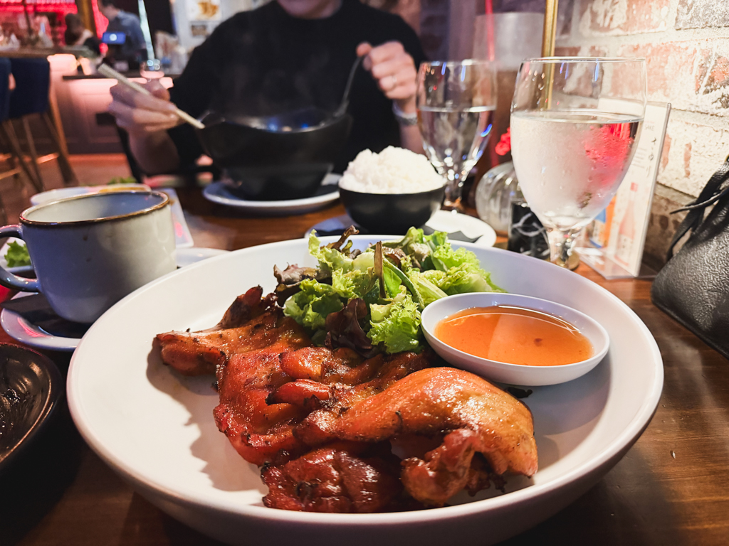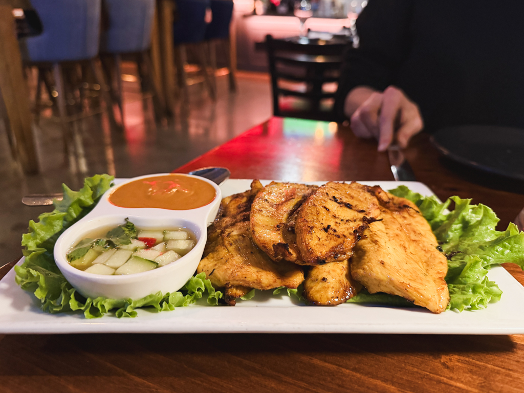 Once I saw it on the menu, I immediately desired to order the MARINATED THAI BBQ CHICKEN (Boneless, skinless, dark meat marinated overnight in our signature bbq sauce, grilled to perfection, served with rice and salad).