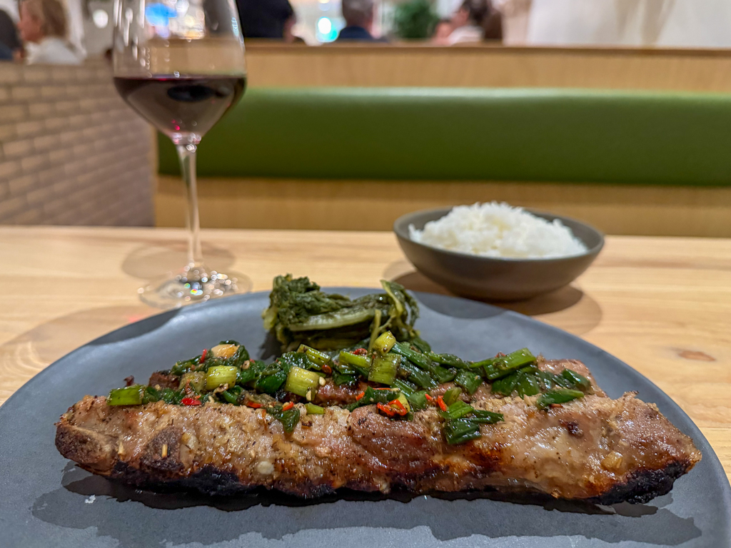 My main course – the “sườn ram nướng sả” (grilled pork spare ribs, salt and pepper, mustard greens, rice) with a side of sambal sauce - was outstanding. This was a dish that made me excited with every bite. It was the right amount of spicy heat and flavor. It reminded me of what I loved about Kiln SoHo in London and overall about spicy Asian cuisine.