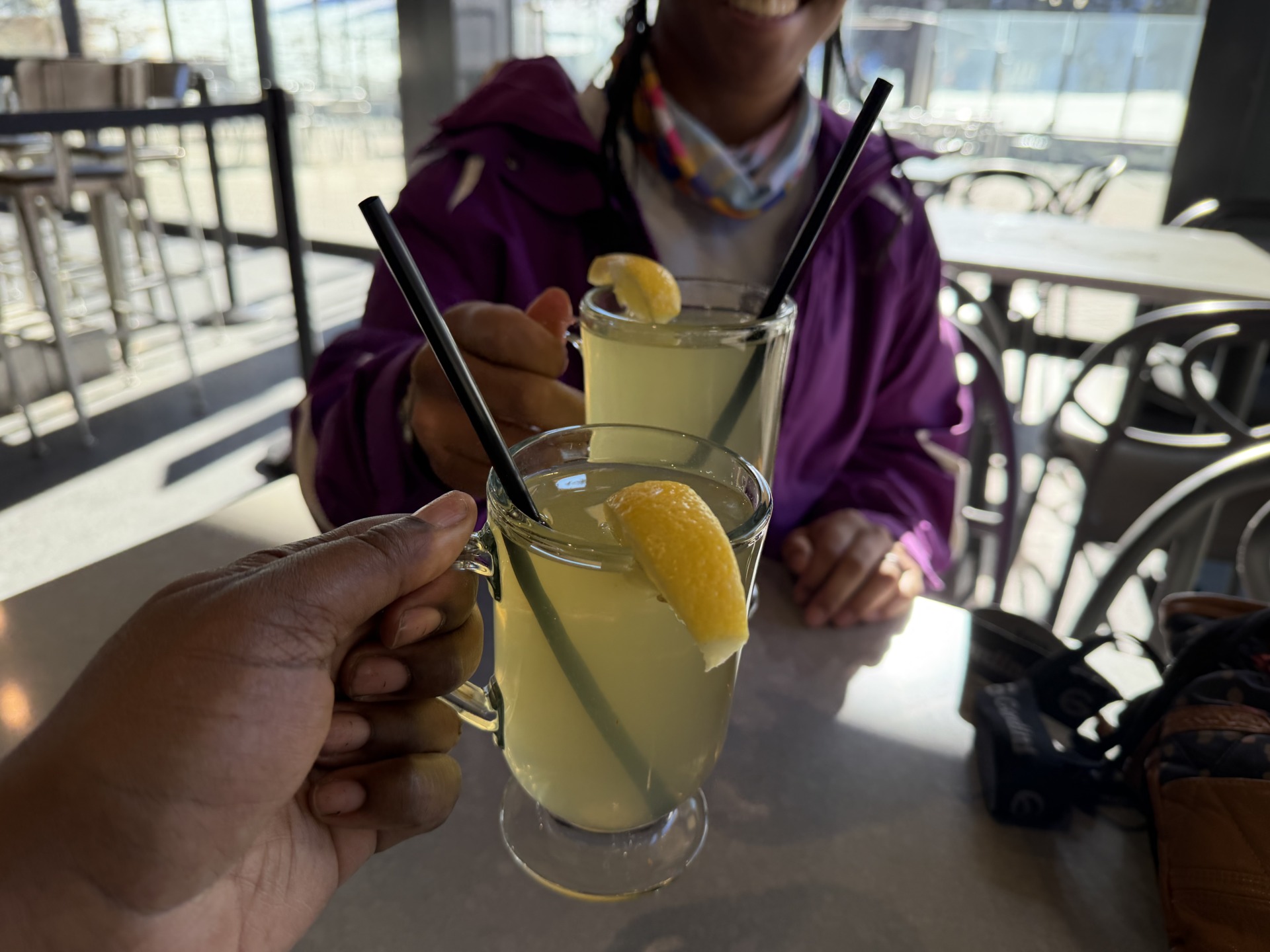 Once Deja and I made it down to the end of the run, I felt elated. I’d done it. Even on slushy ass shit snow, I’d done it. And now it was time to celebrate.
